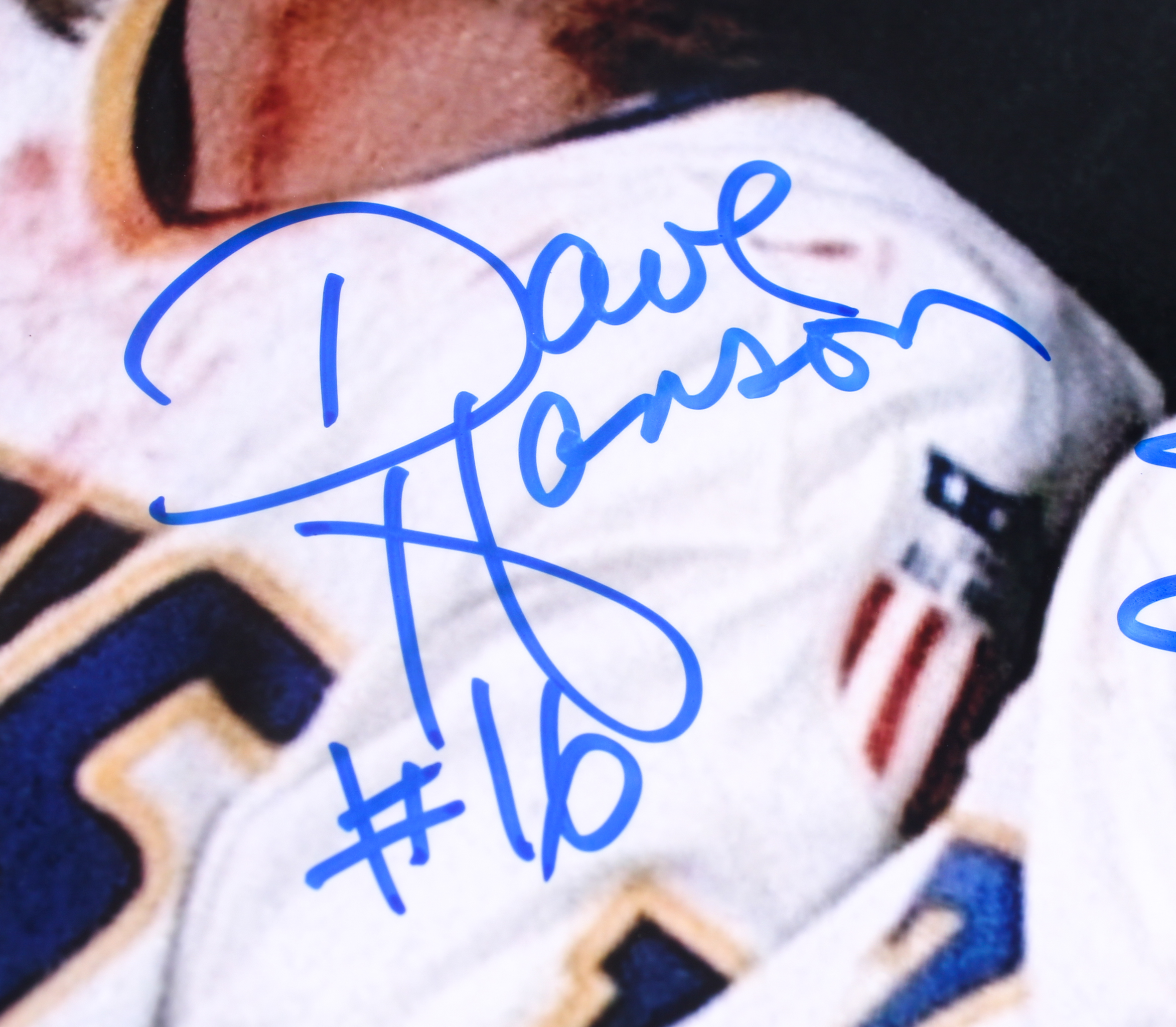 Photo measures 8" x 10" in size and has been hand-signed by Jeff Carlson (Jeff Hanson), Steve Carlson (Steve Hanson), and David Hanson (Jack Hanson).