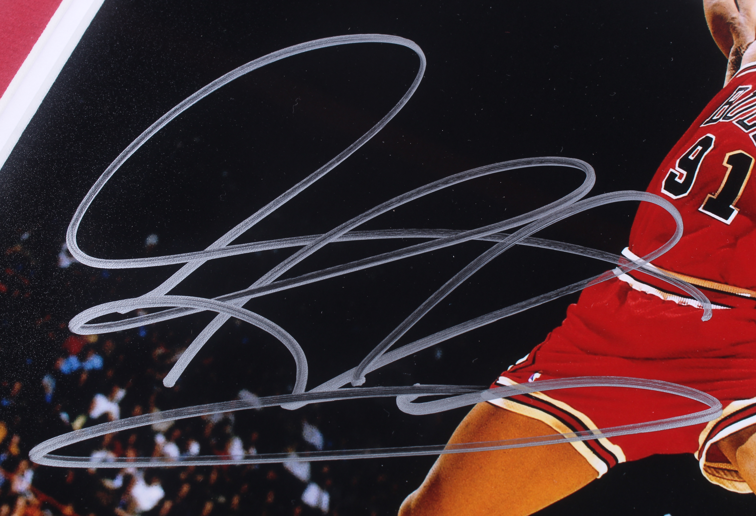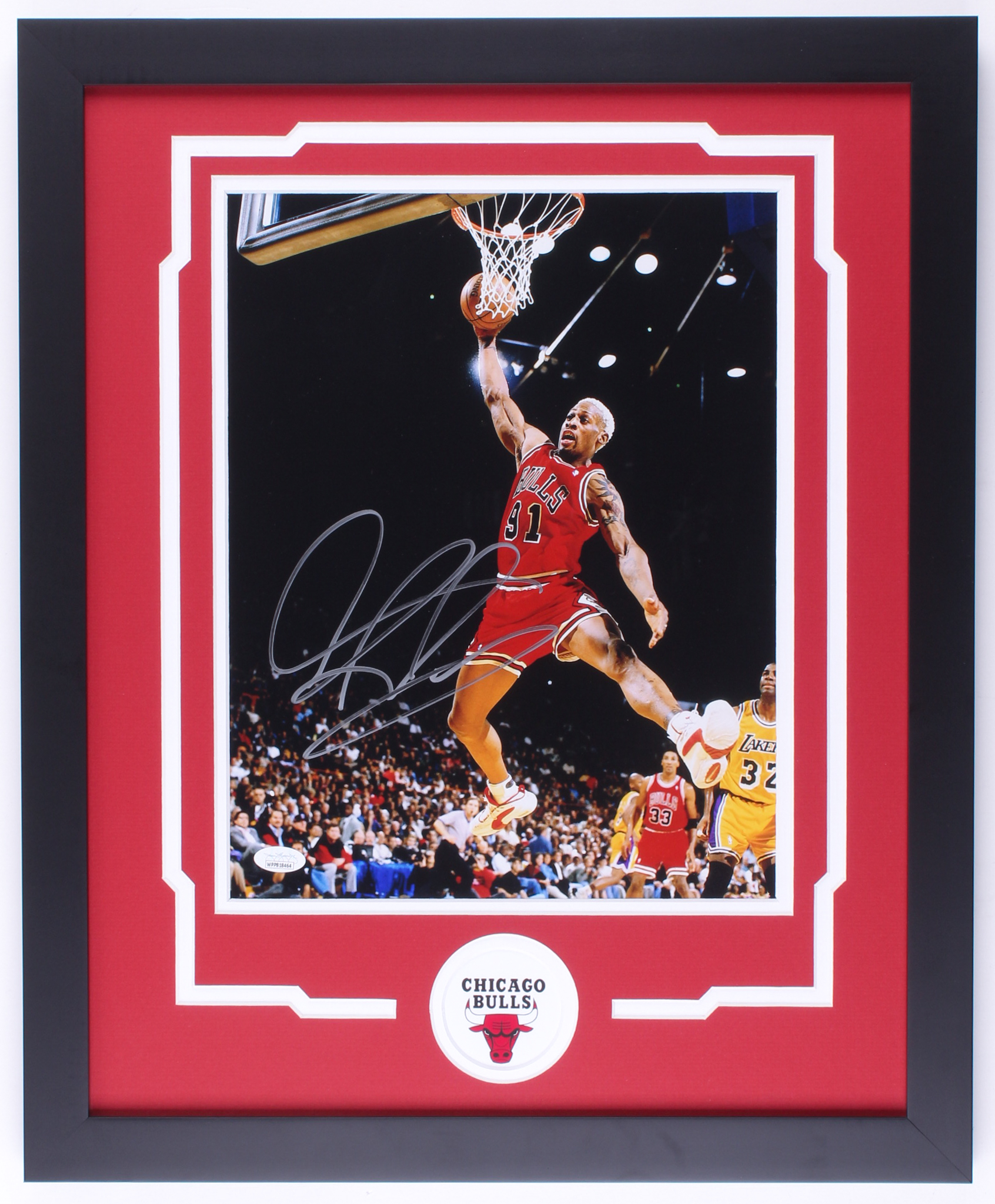 Custom frame measures 18" x 22" in size and features a photo that has been hand-signed by Dennis Rodman (Chicago Bulls, HOF).