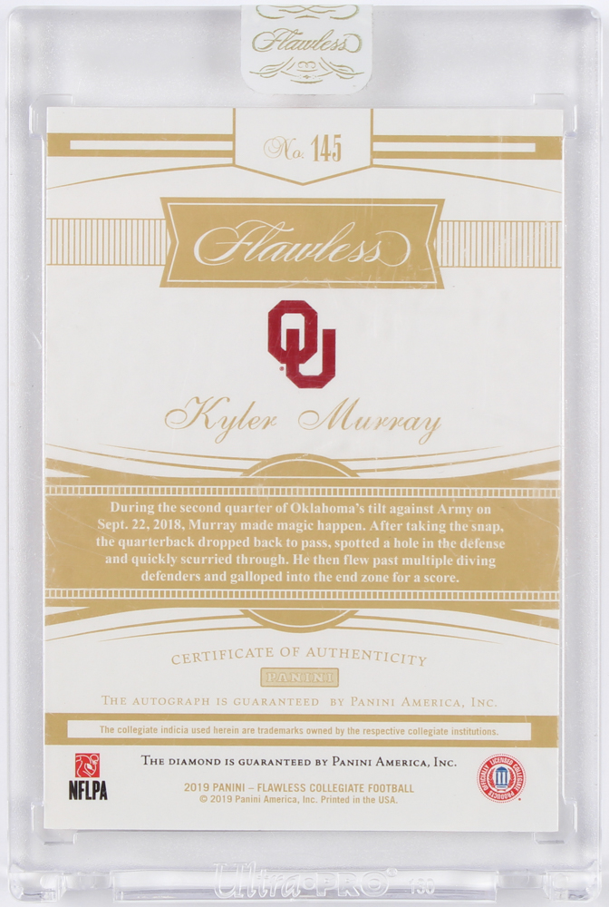Kyler Murray 2019 Panini Flawless Collegiate Rookie Gems Signatures #145 RC