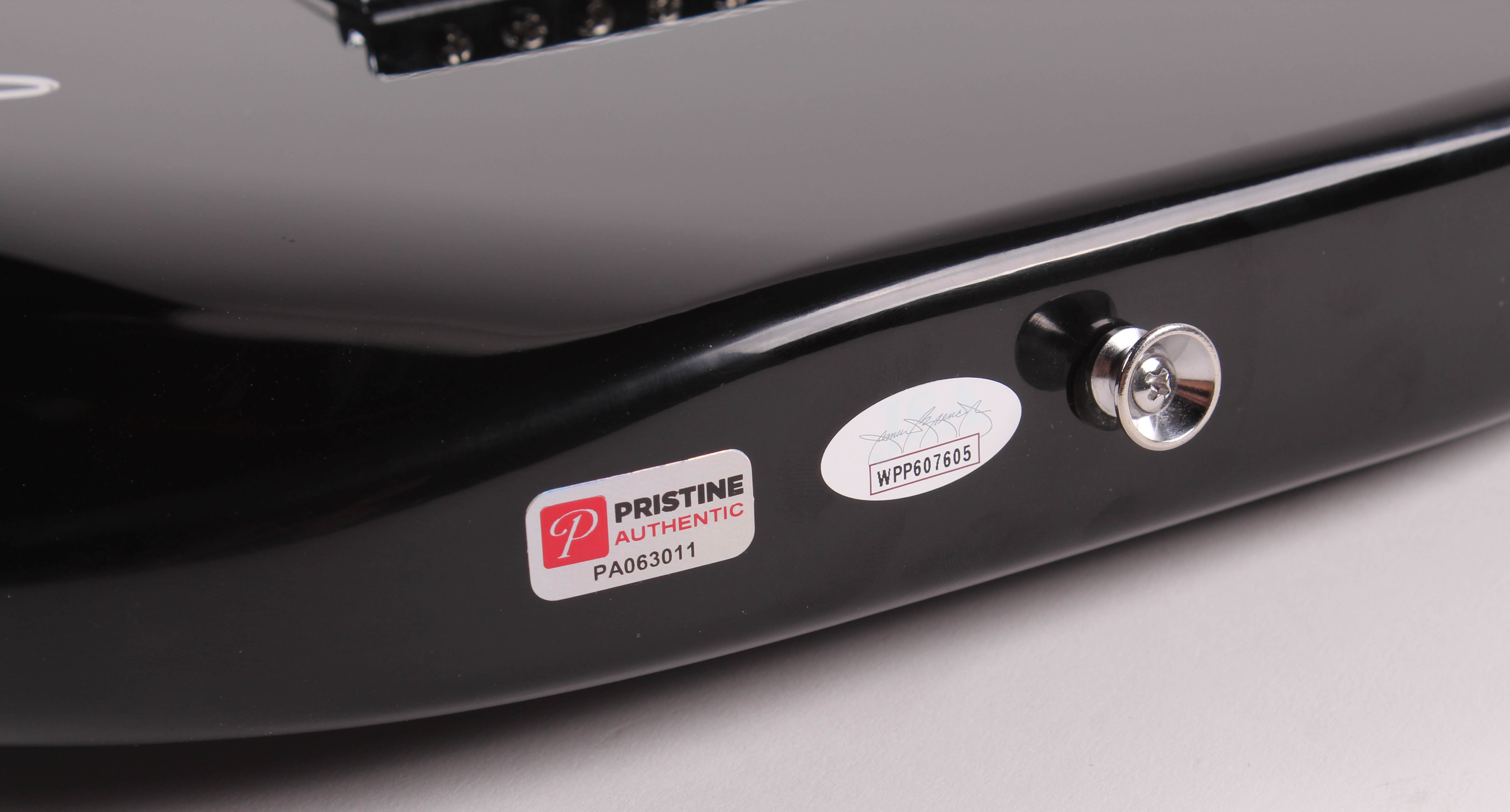 The guitar includes an official James Spence Authentication (JSA) hologram and matching COA for authenticity purposes. The signing of this item was witnessed by JSA. Also includes an official Pristine Authentic tamper proof hologram and matching COA.