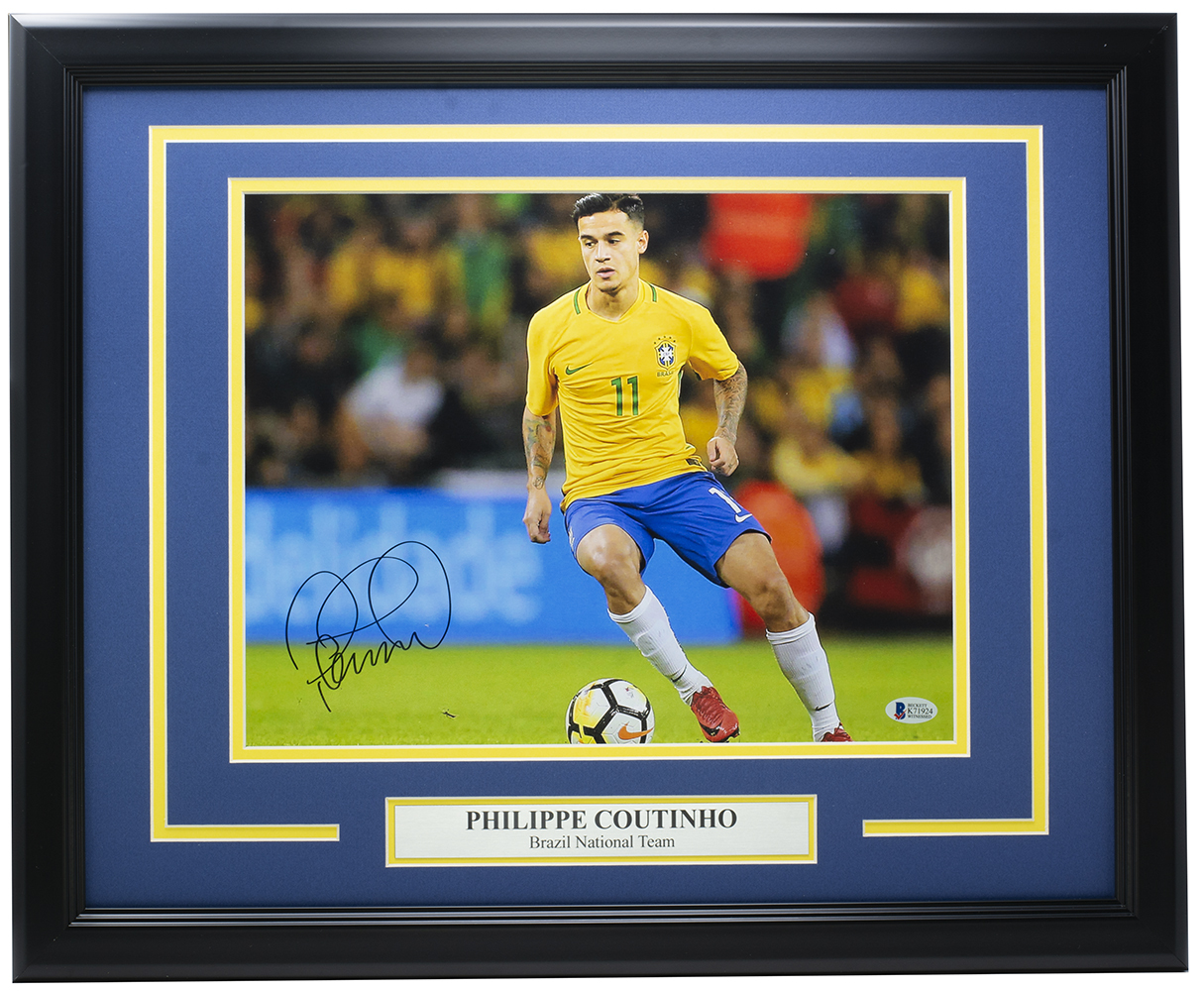 Philippe Coutinho Signed Team Brazil 16x20 Custom Framed Photo (Beckett Hologram)