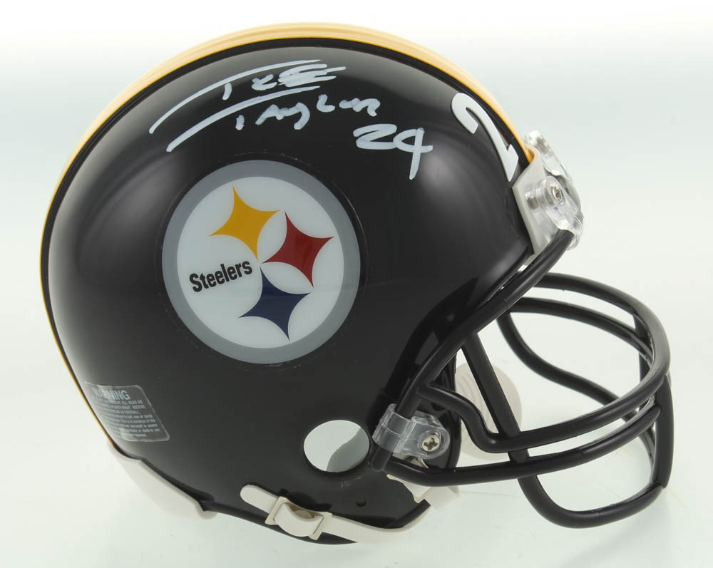 Riddell Pittsburgh Steelers mini helmet has been hand-signed by Ike Taylor.