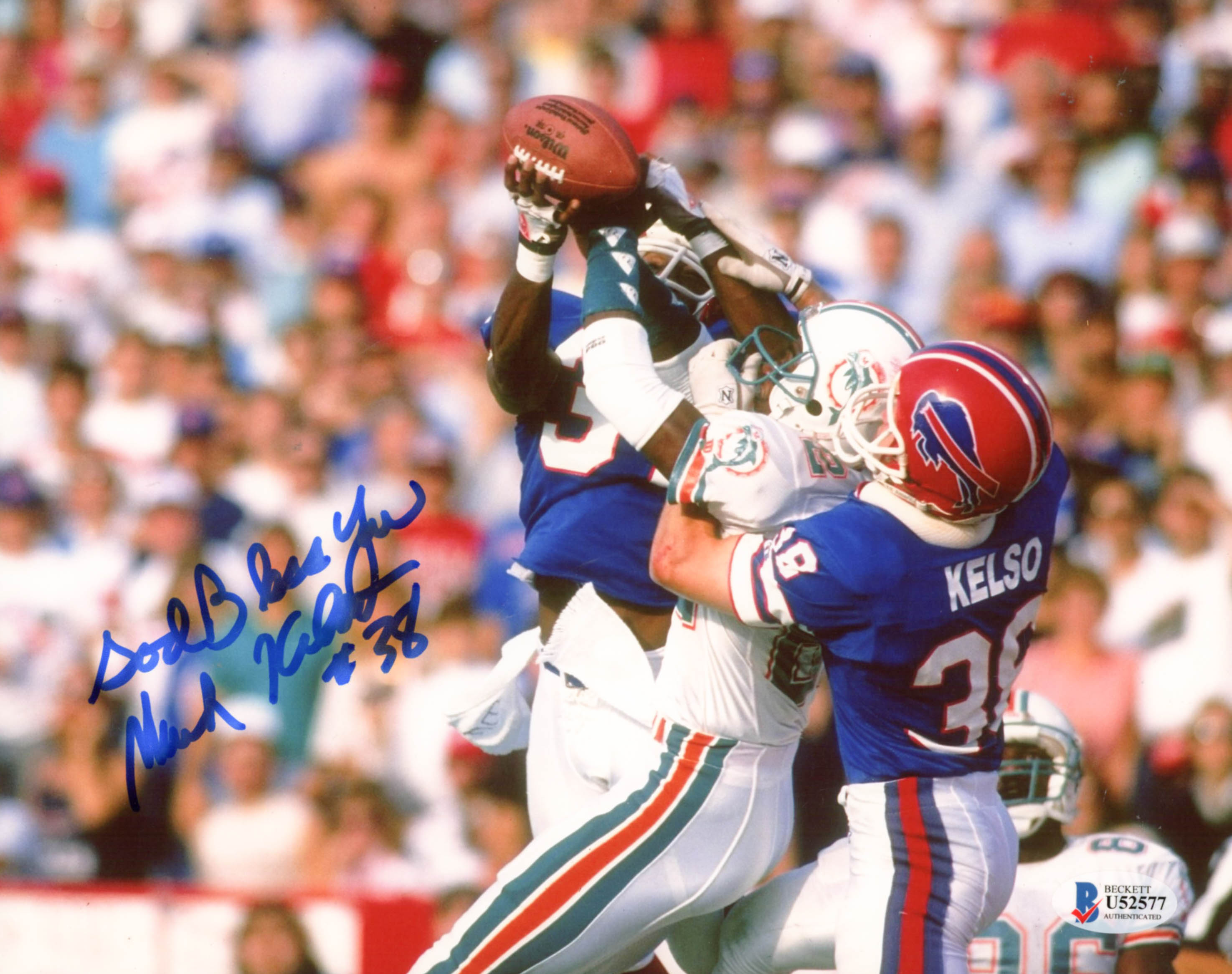 Photo measures 8" x 10" in size and has been hand-signed by Mark Kelso (Buffalo Bills).