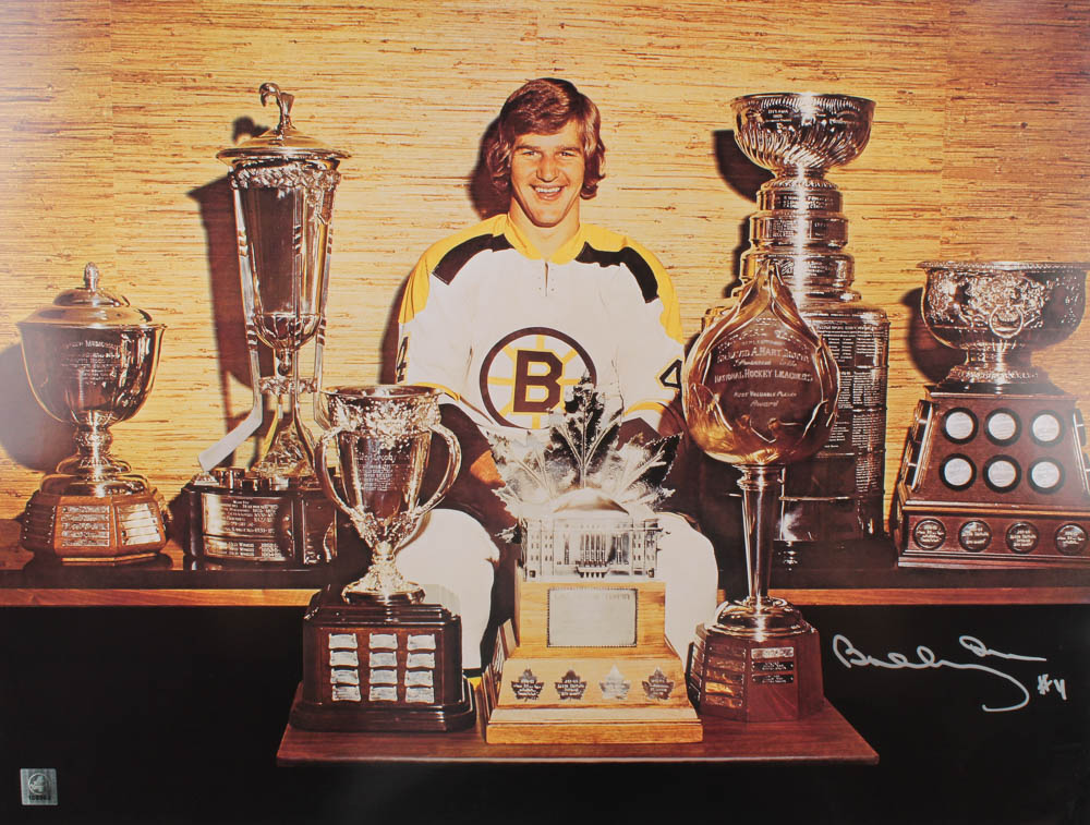 Photo measures approximately 18" x 24" in size. Hand-signed by Bobby Orr (Boston Bruins, HOF).