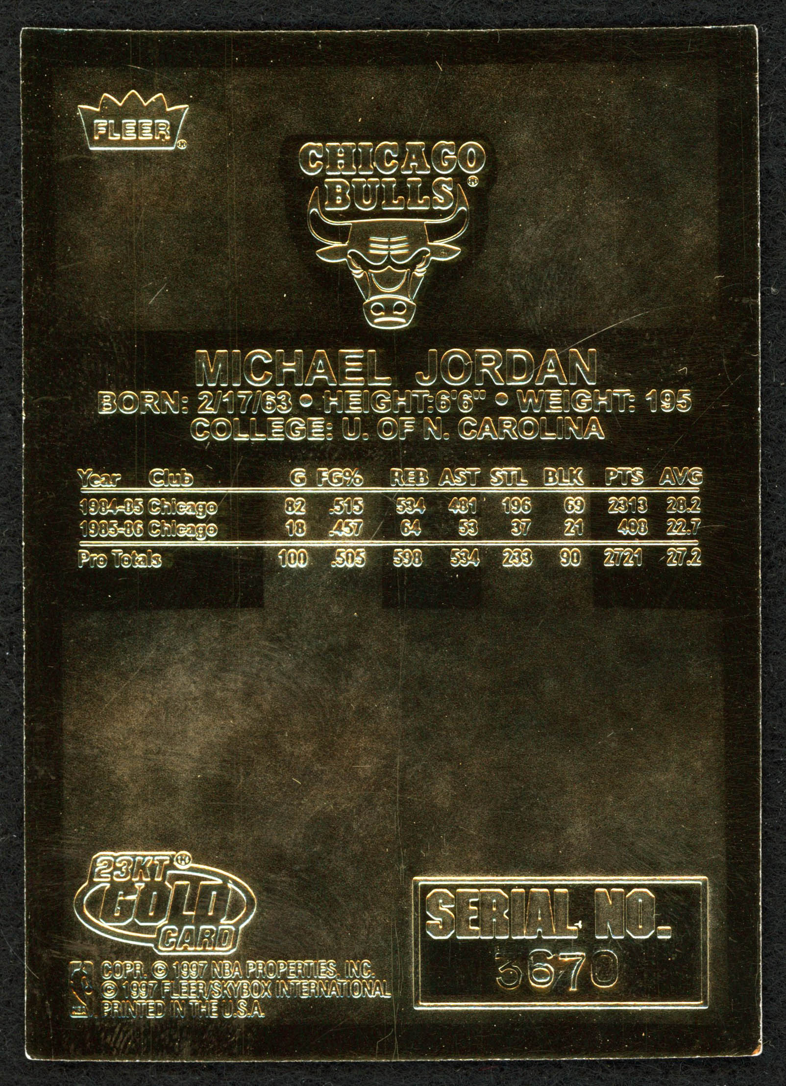 Michael Jordan 1996-97 Fleer Feel the Game Signature Series 23Kt Gold Card