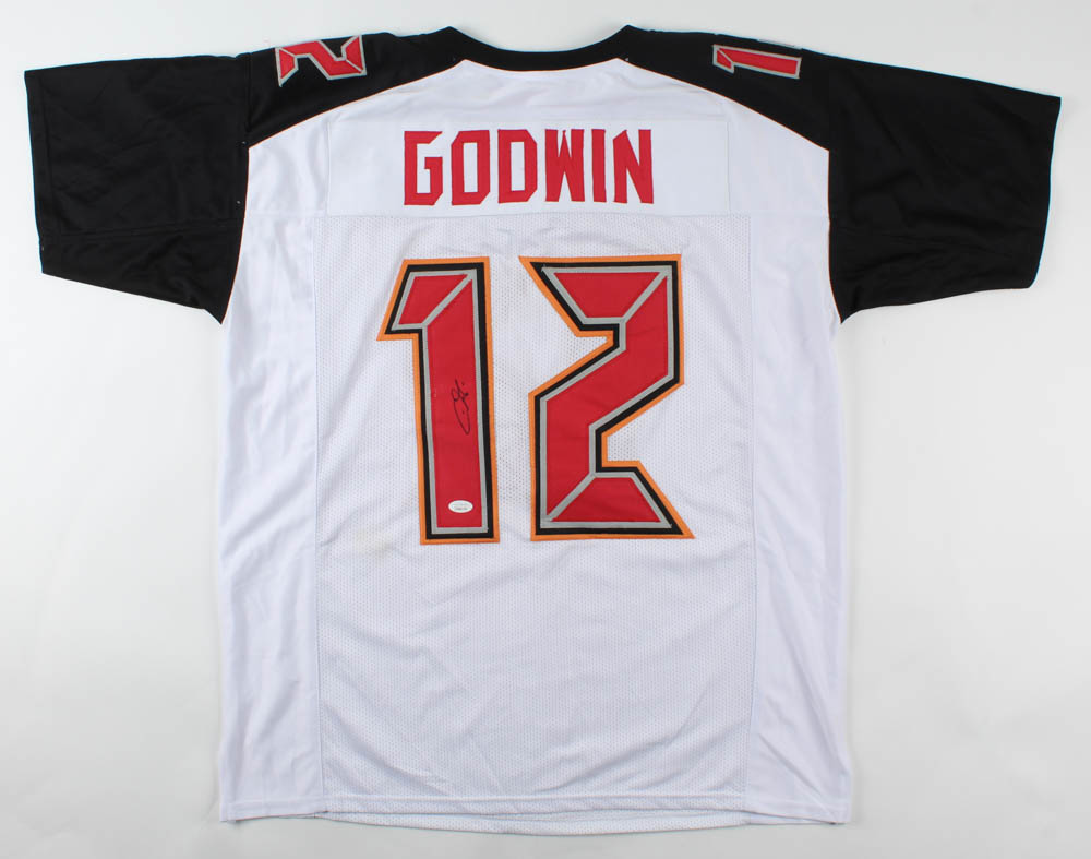 Custom on-field style jersey. Everything sewn on, size XL. Hand-signed by Chris Godwin.