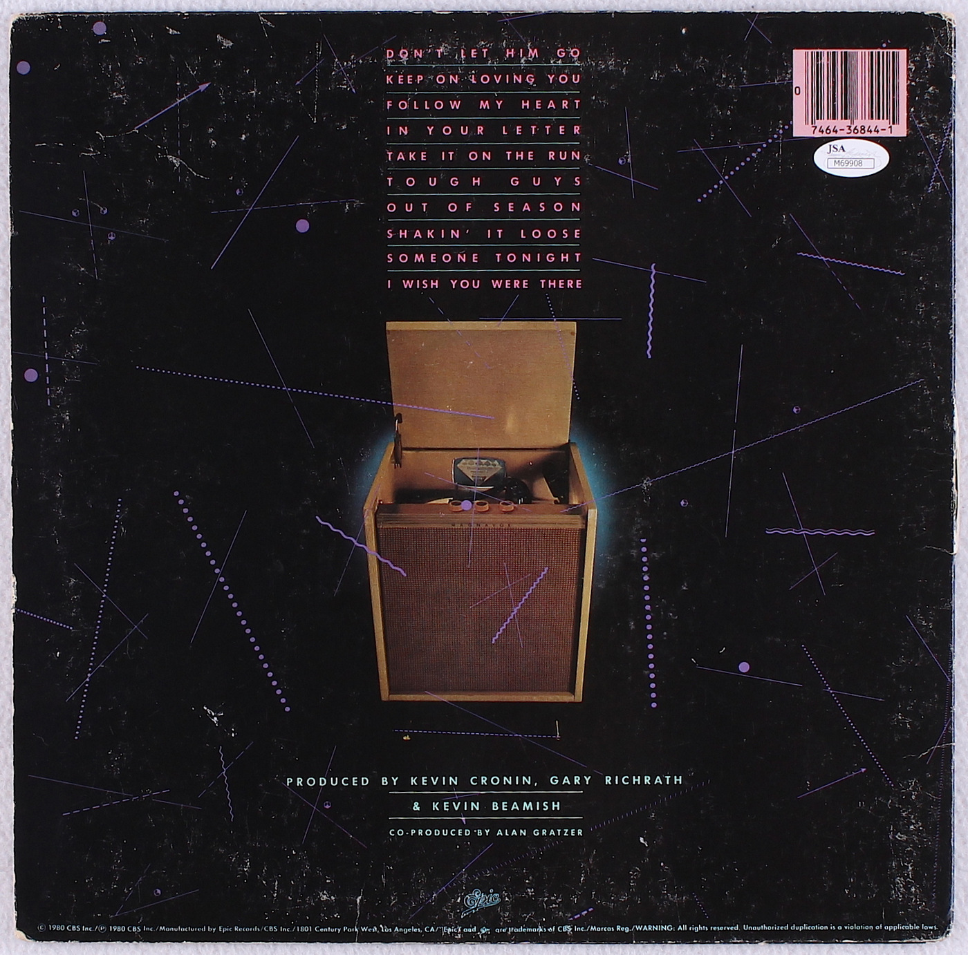 Album cover has been hand-signed in silver paint pen by Kevin Cronin, Bruce Hall and Neal Doughty. Please note, the record shown is included. The autograph includes an official James Spence Authentication (JSA) hologram and matching COA for authenticity purposes.