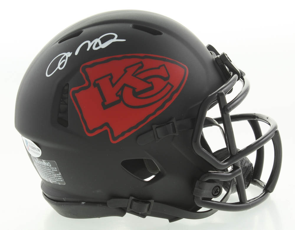 Riddell Kansas City Chiefs Eclipse Alternate Speed Mini Helmet has been hand-signed by Joe Montana (HOF).