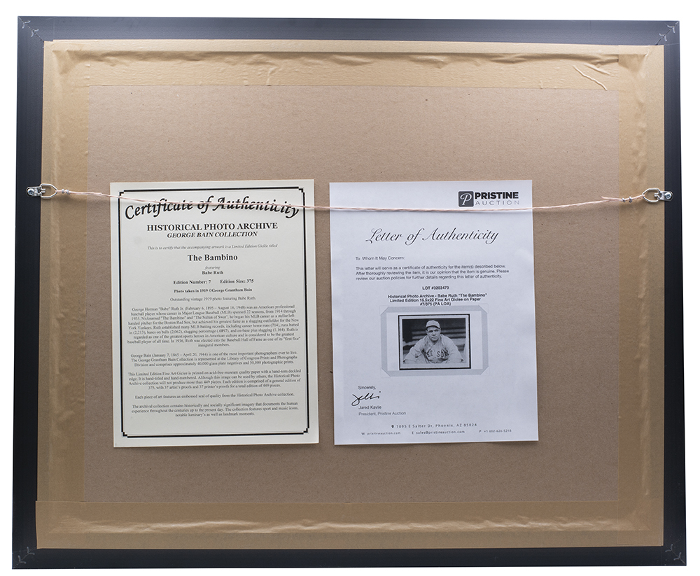 Historical Photo Archive - Babe Ruth "The Bambino" Limited Edition 17x22 Custom Framed Fine Art Giclee on Paper # / 375 (PA LOA)