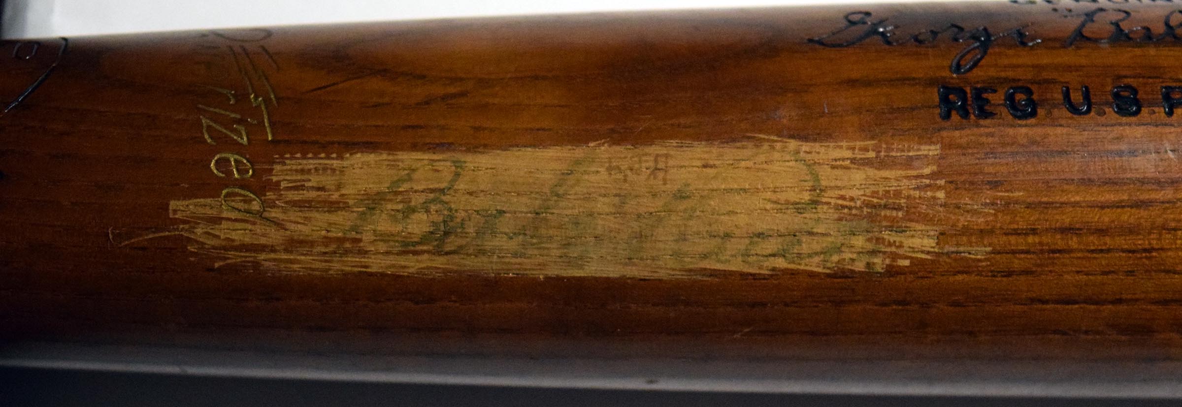 The autograph is a full Babe Ruth and is 100% legible. This bat has an interesting history as it was signed in 1935 by Ruth as a player, and this was given to a young man named Fred Archibald (who penned his initials very lightly above Babe Ruth's autograph). The bat was purchased by former Orioles star pitcher Mike Flanagan and was displayed in the Babe Ruth Museum in Baltimore, Maryland for many years. Fully presentable and attractive signed bat from the ultimate baseball player.