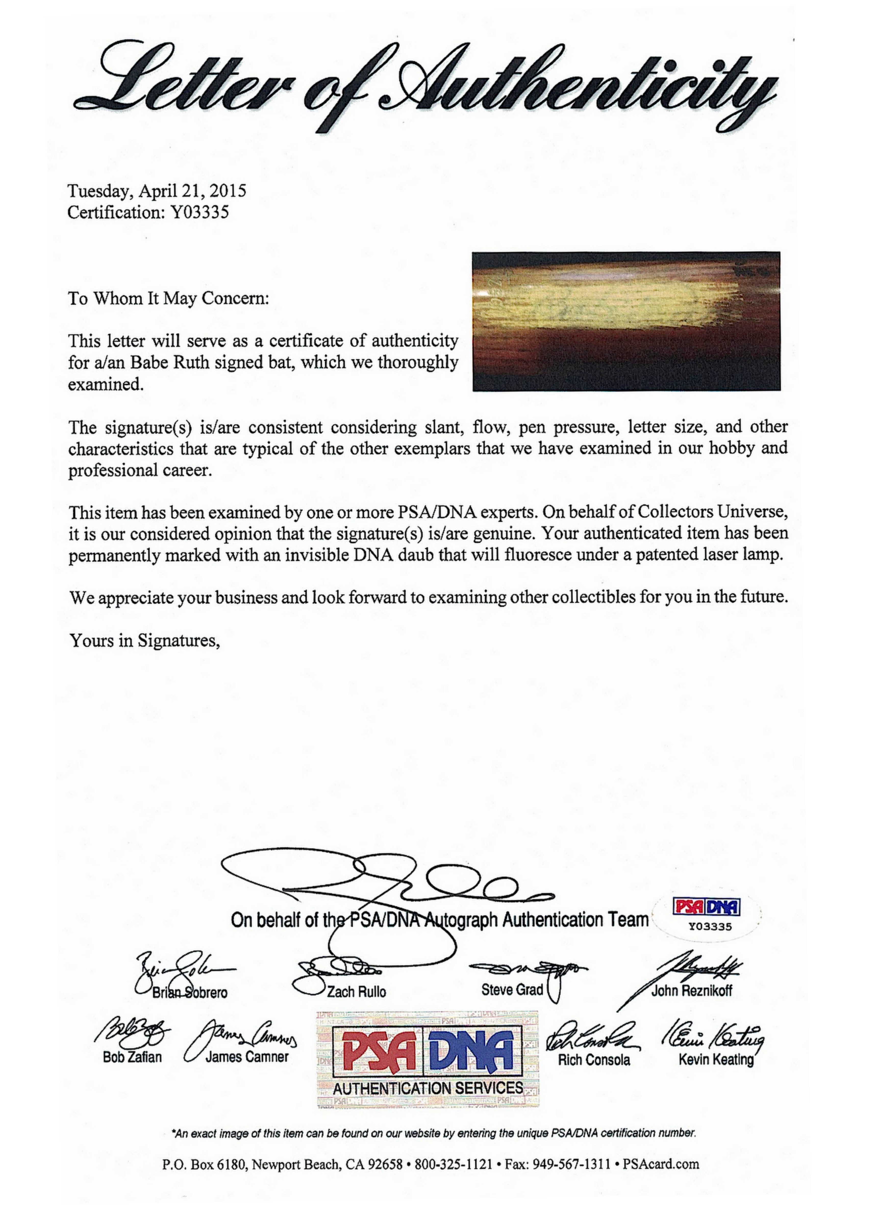 The autograph includes an official PSA/DNA hologram and matching LOA for authenticity purposes.