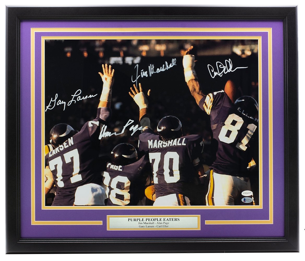Vikings "Purple People Eaters" 22x27 Custom Framed Photo Display Signed by (4) with Carl Eller, Jim Marshall, Gary Larsen & Alan Page (TSE & Beckett)