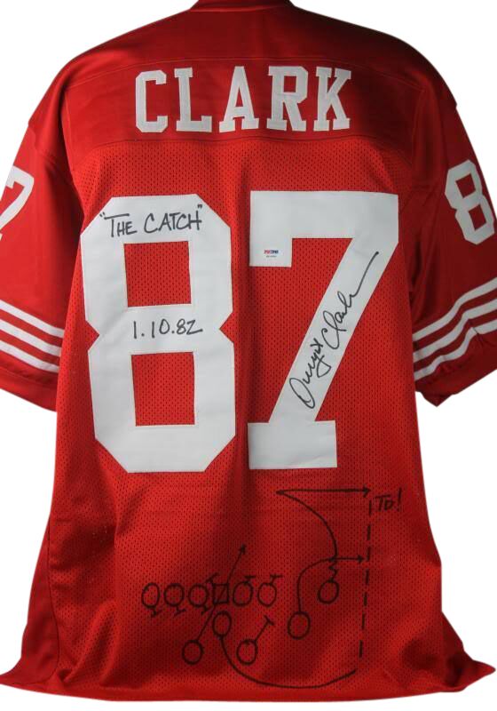 Dwight Clark Signed Jersey Inscribed "The Catch" & "1.10.82" with Hand-Drawn Play (PSA COA)
