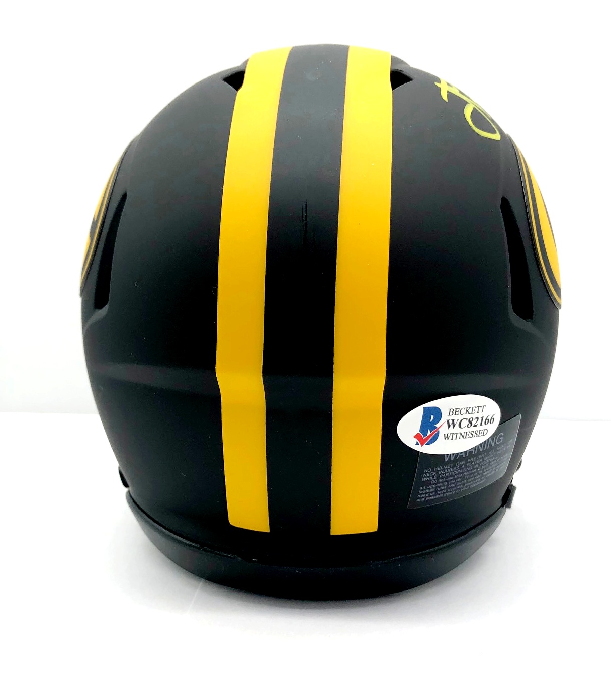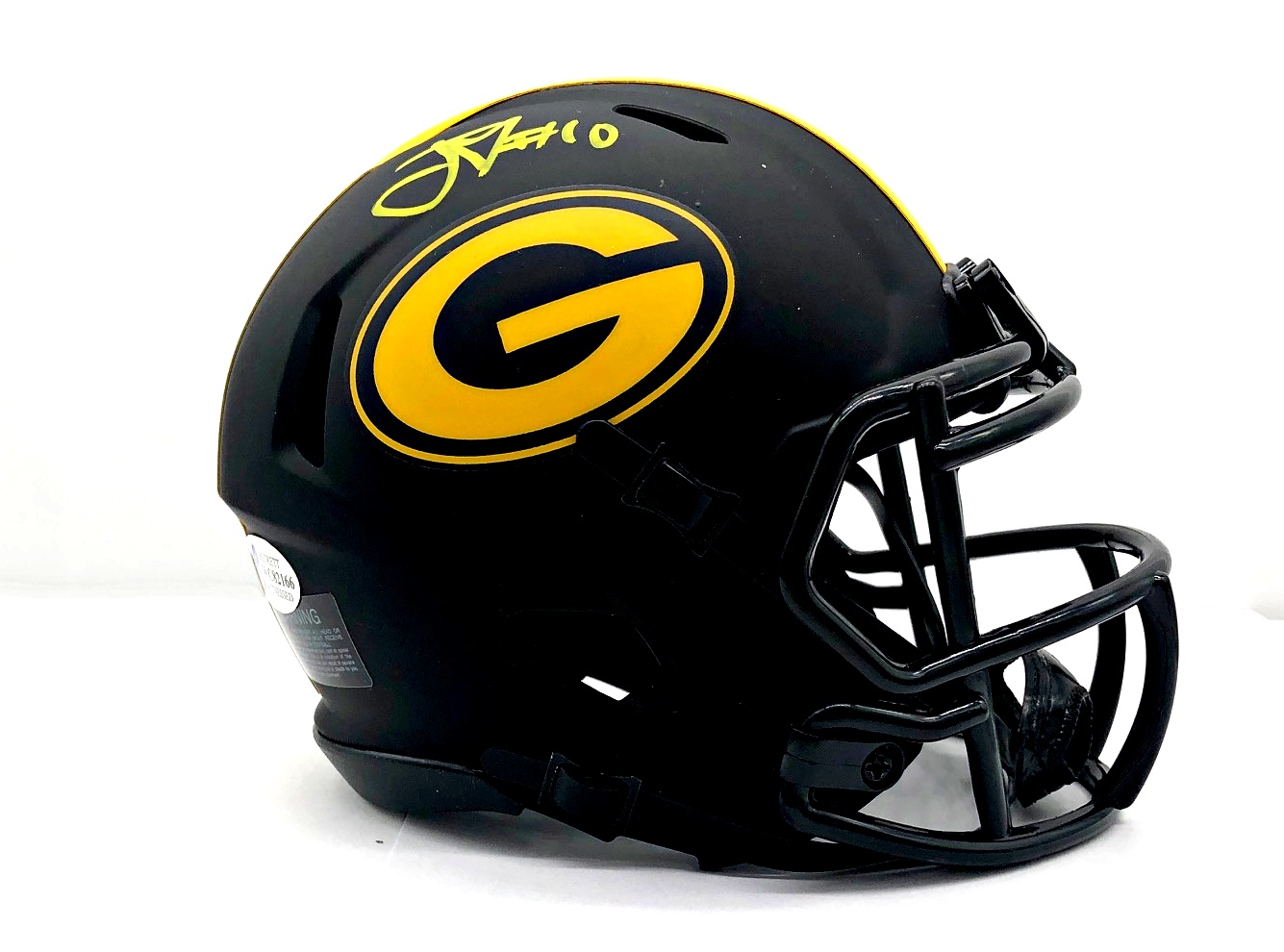 Riddell Green Bay Packers Eclipse Alternate mini-speed helmet has been hand-signed by Jordan Love.