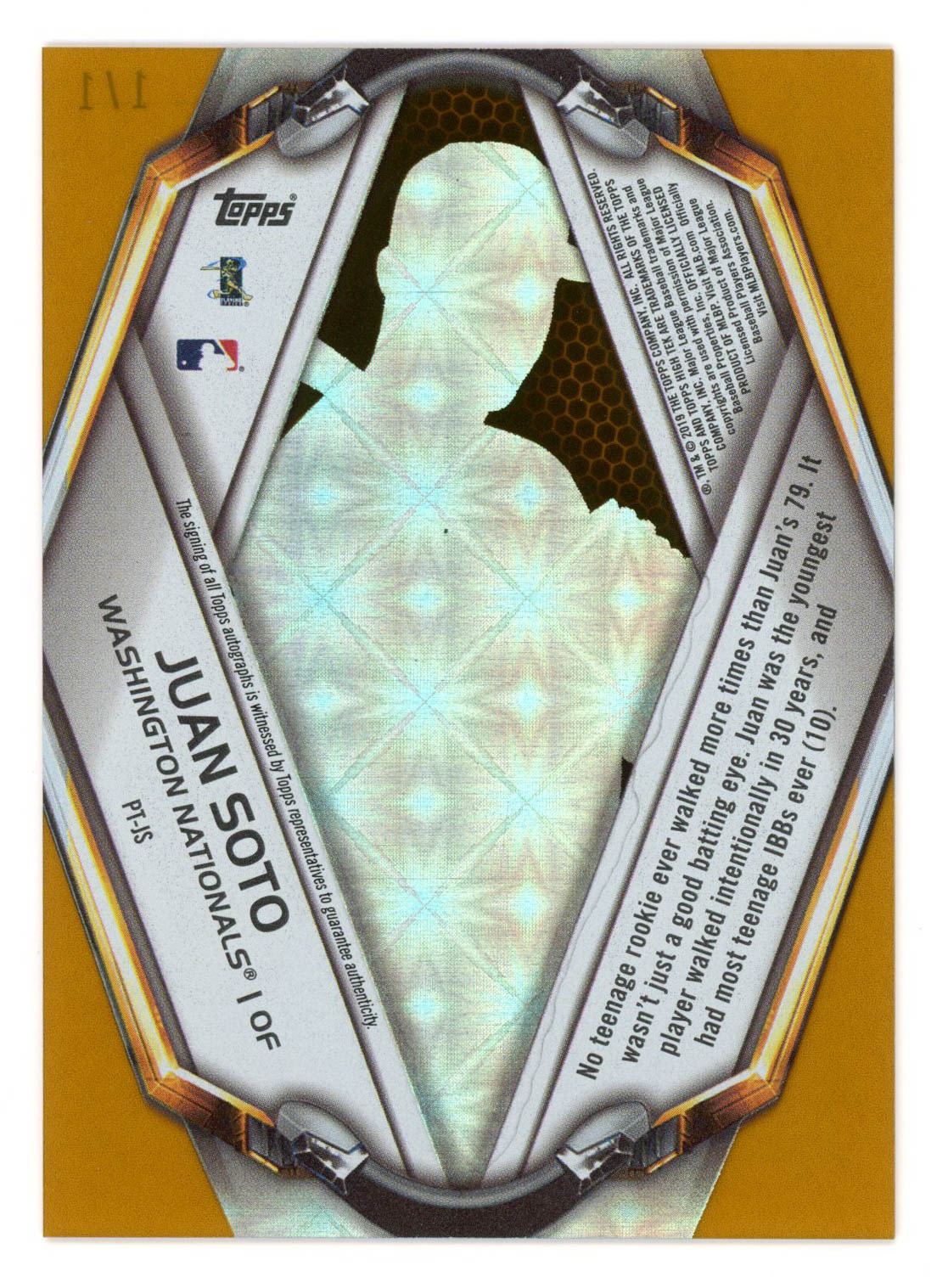Juan Soto 2019 Topps High Tek PortraiTEK Autographs Gold SpecTEKular Diffractors #PTJS