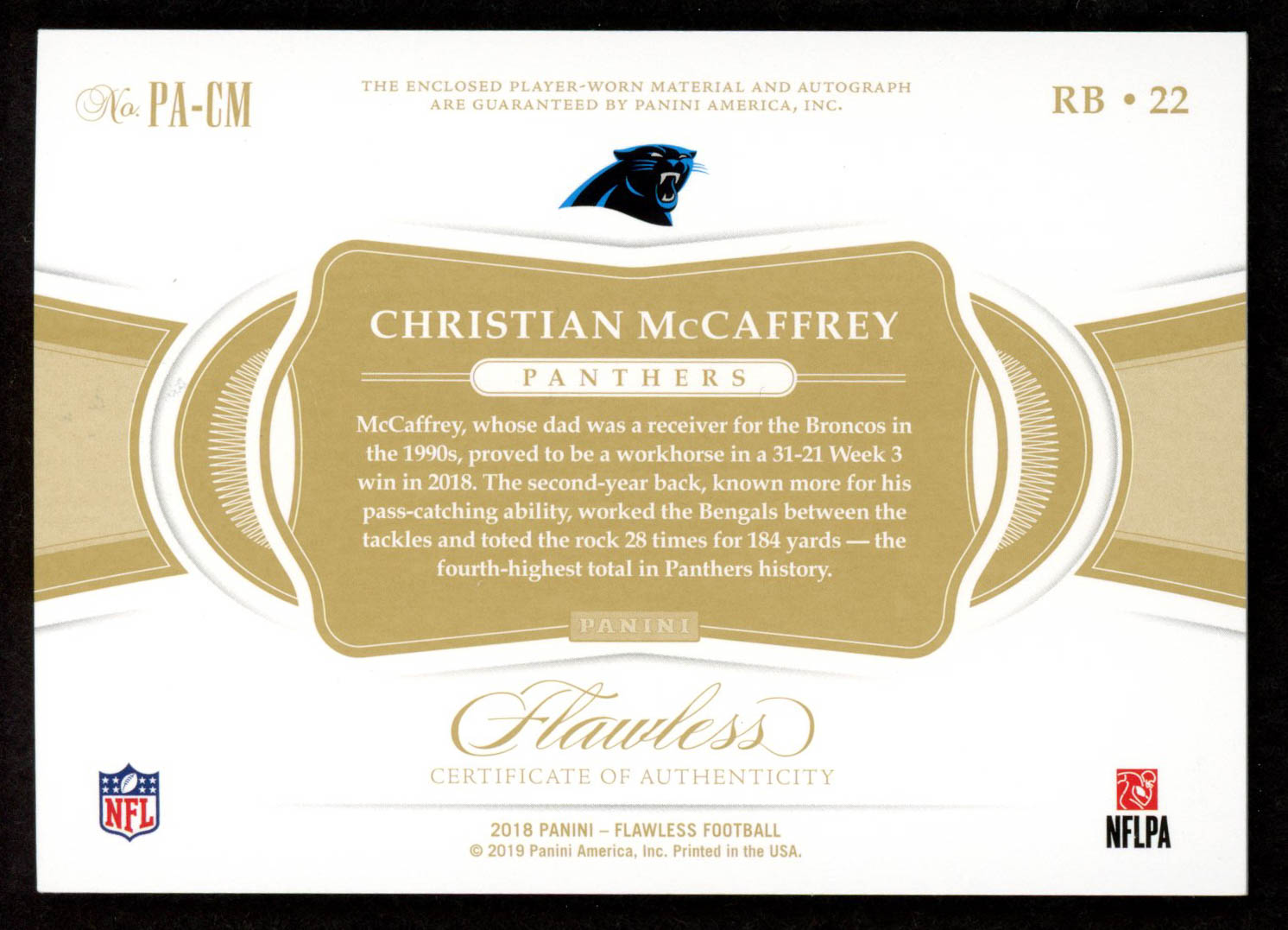 Christian McCaffrey 2018 Panini Flawless Patch Autographs Ruby #25