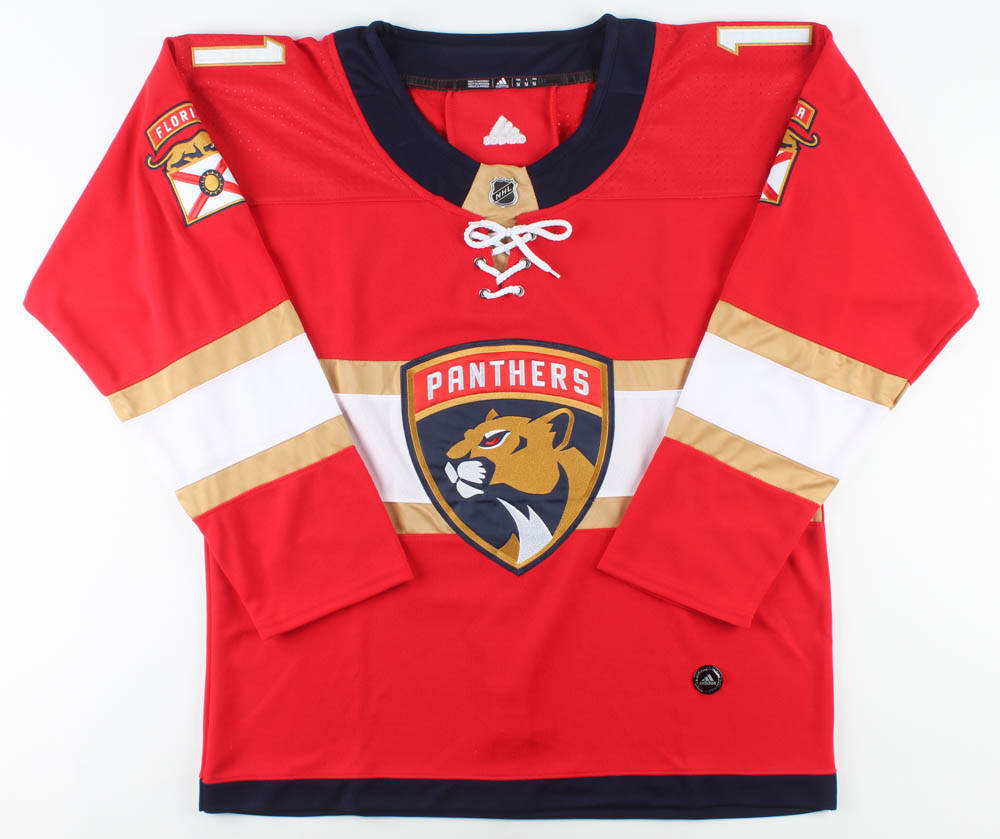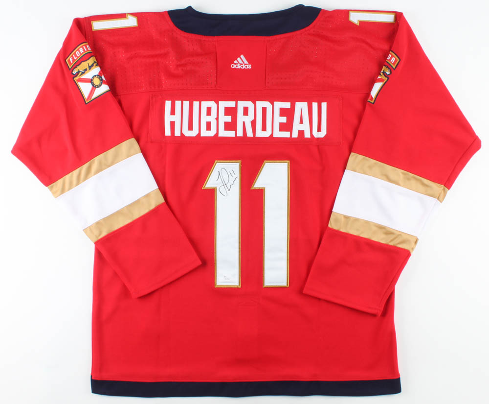 Adidas on-ice style jersey. Everything is sewn on, size 54. Hand-signed by Jonathan Huberdeau (Florida Panthers).