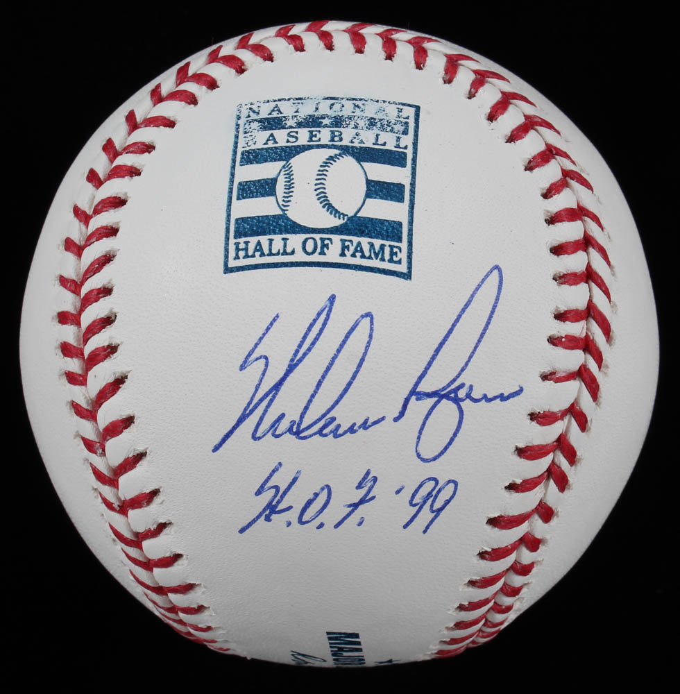 Rawlings Official Hall of Fame logo Major League Baseball. Hand-signed and inscribed by Nolan Ryan (Houston Astros, HOF).