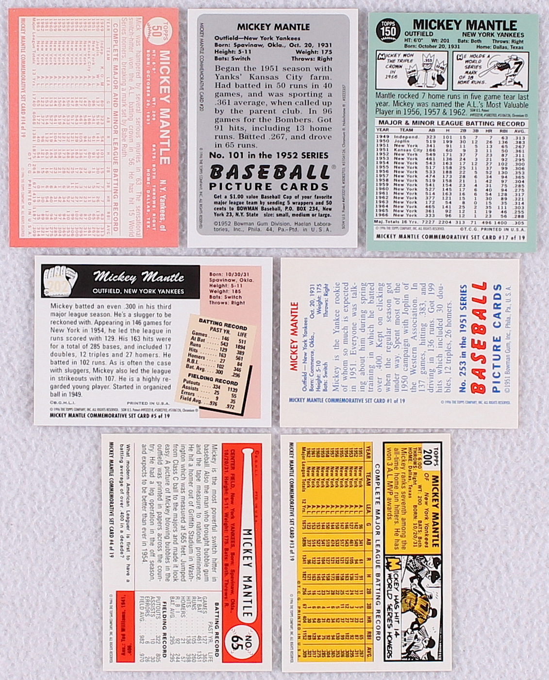Lot of (7) Mickey Mantle Reprint Insert Baseball Cards