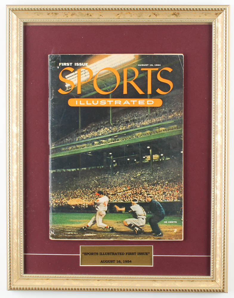 Custom frame measures 14" x 18" in size and features the first issue of Sports Illustrated magazine dated August 16, 1954. Please see photos for more information.