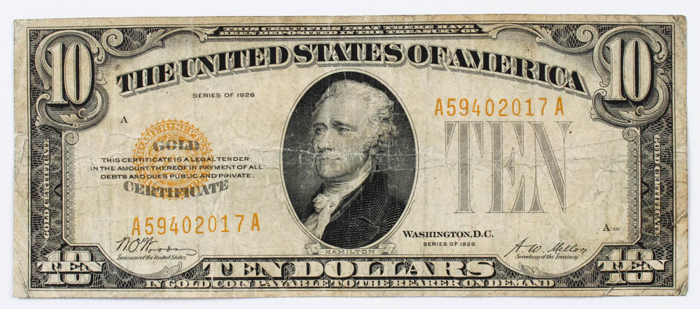 1928 $10 Ten-Dollar U.S. Gold Certificate Bank Note