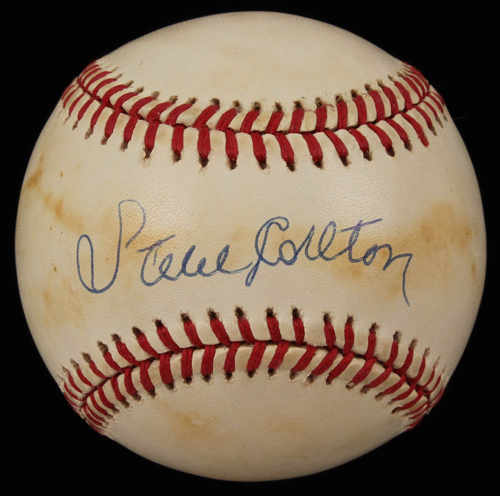 Rawlings Official National League baseball. Hand-signed by Steve Carlton (St. Louis Cardinals, HOF). Please note, the baseball shows signs of toning.
