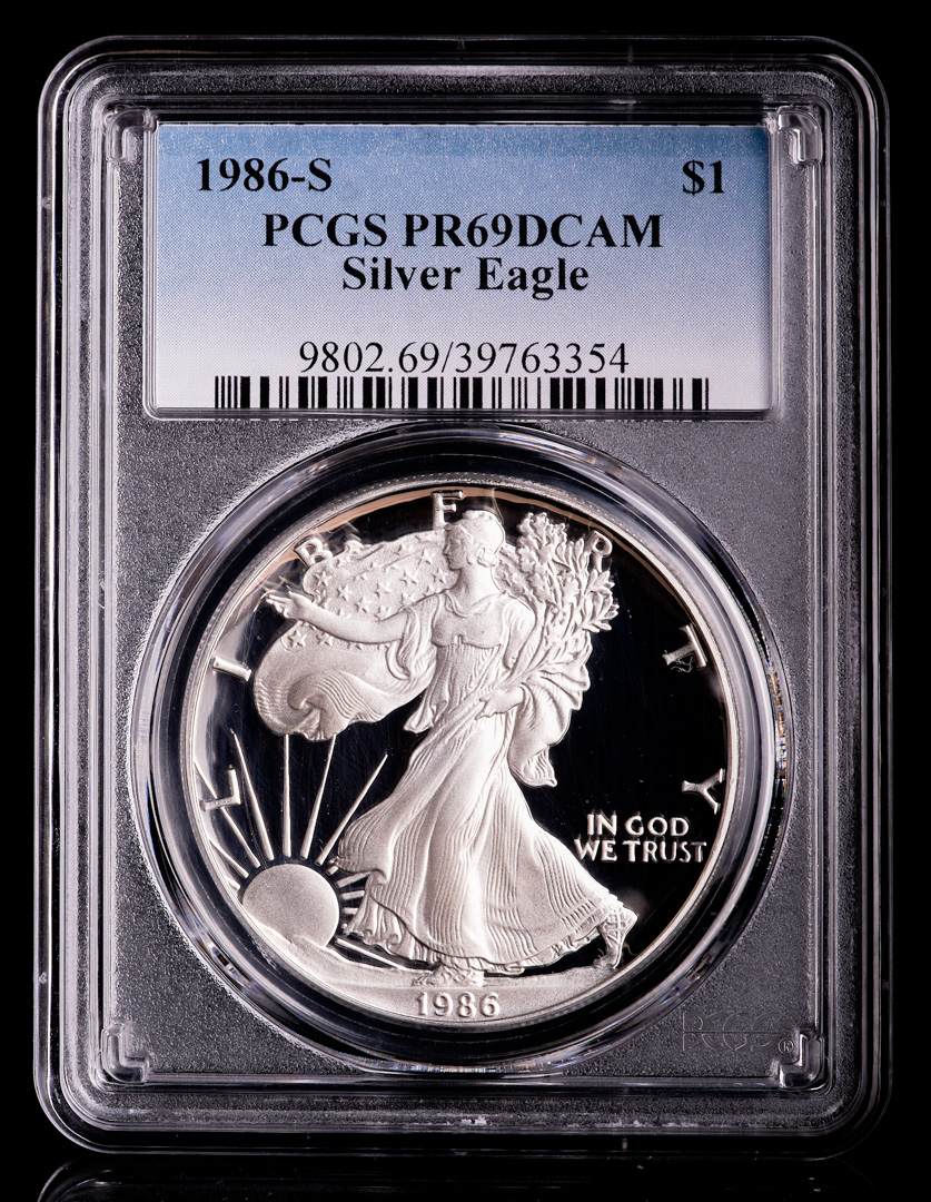 1986-S American Silver Eagle $1 One-Dollar Coin (PCGS PR69 Deep Cameo)