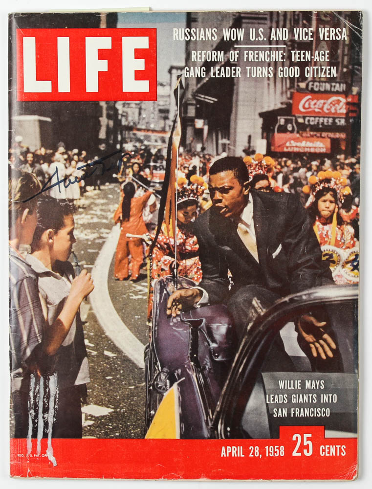 "Life" magazine is dated April 28, 1958 and has been hand-signed by Willie Mays (San Francisco Giants, HOF). Please see photos for details.