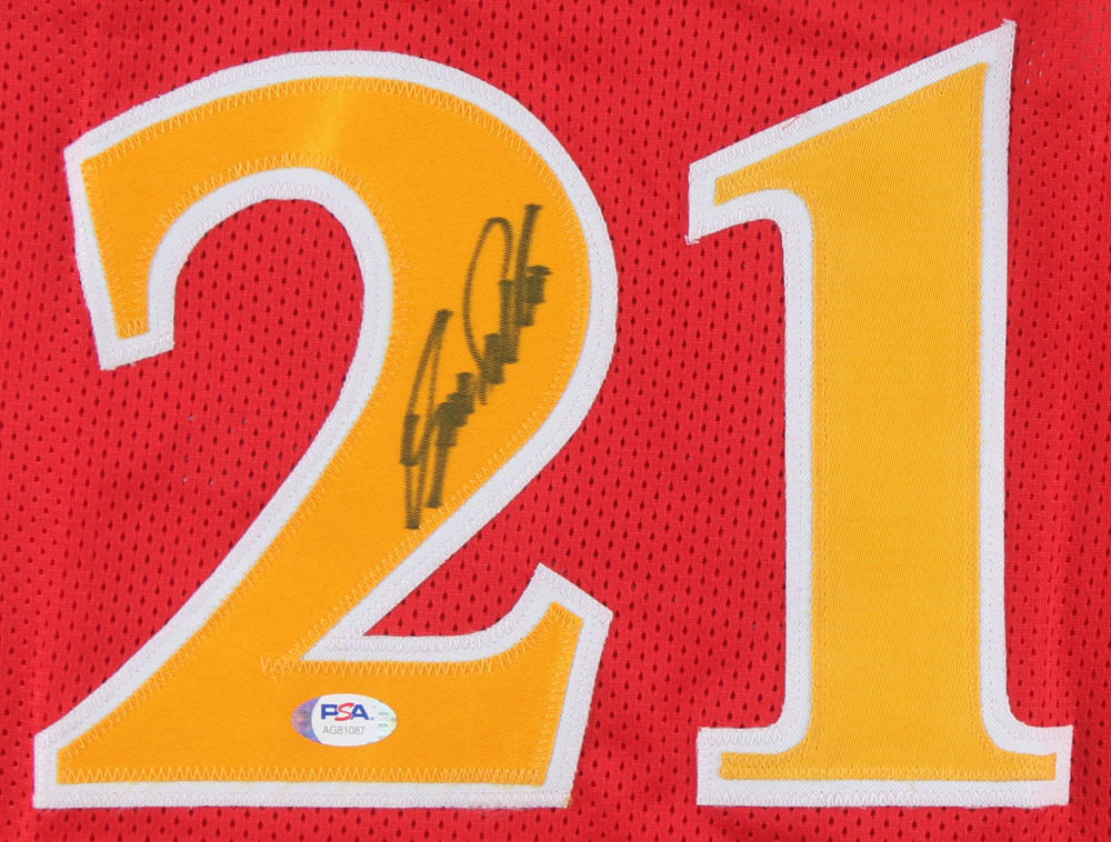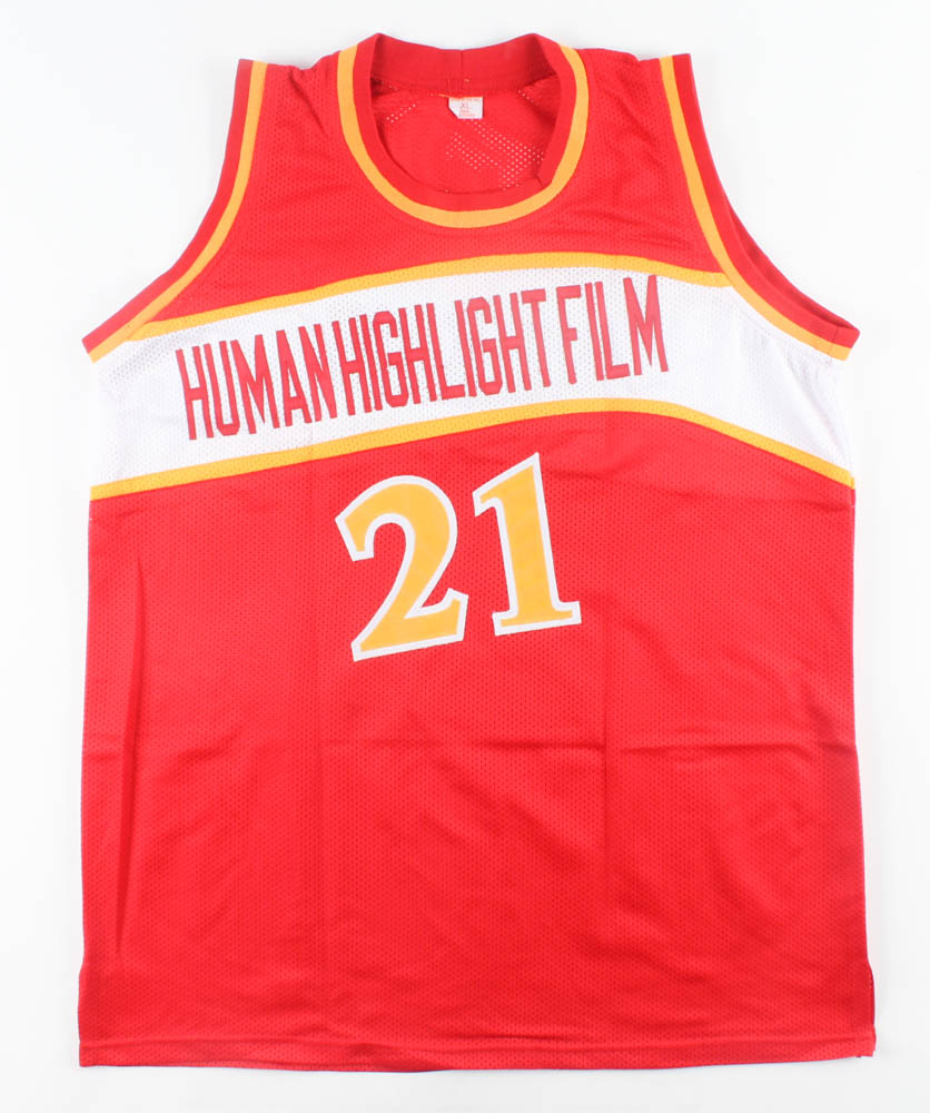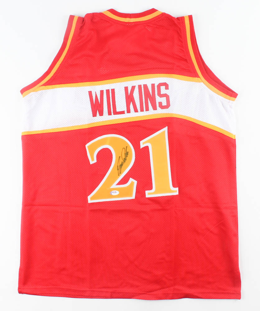 Custom on-court style jersey. Everything is sewn on, size XL. Hand-signed by Dominique Wilkins (HOF).