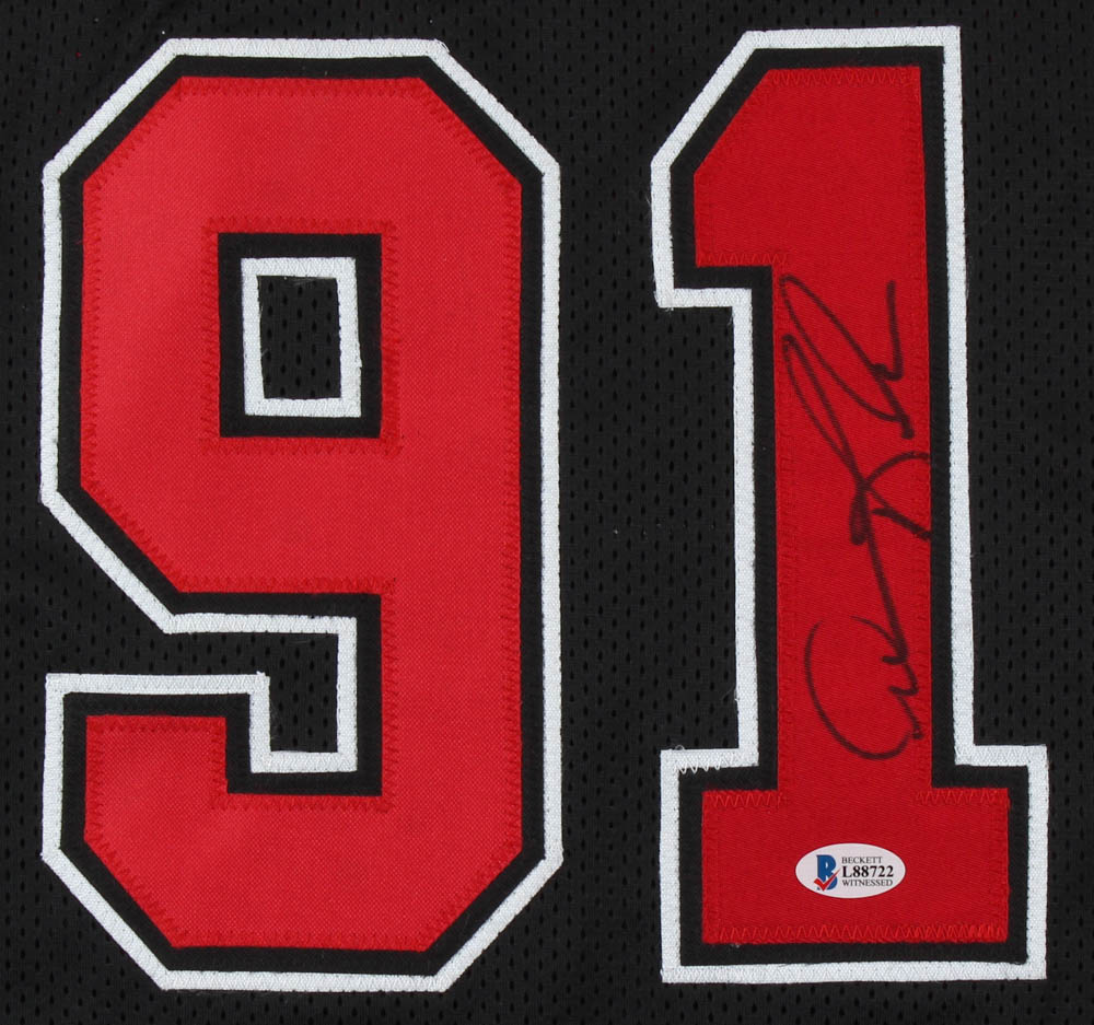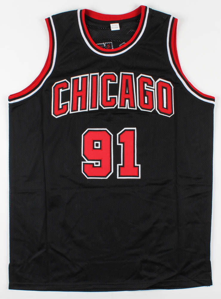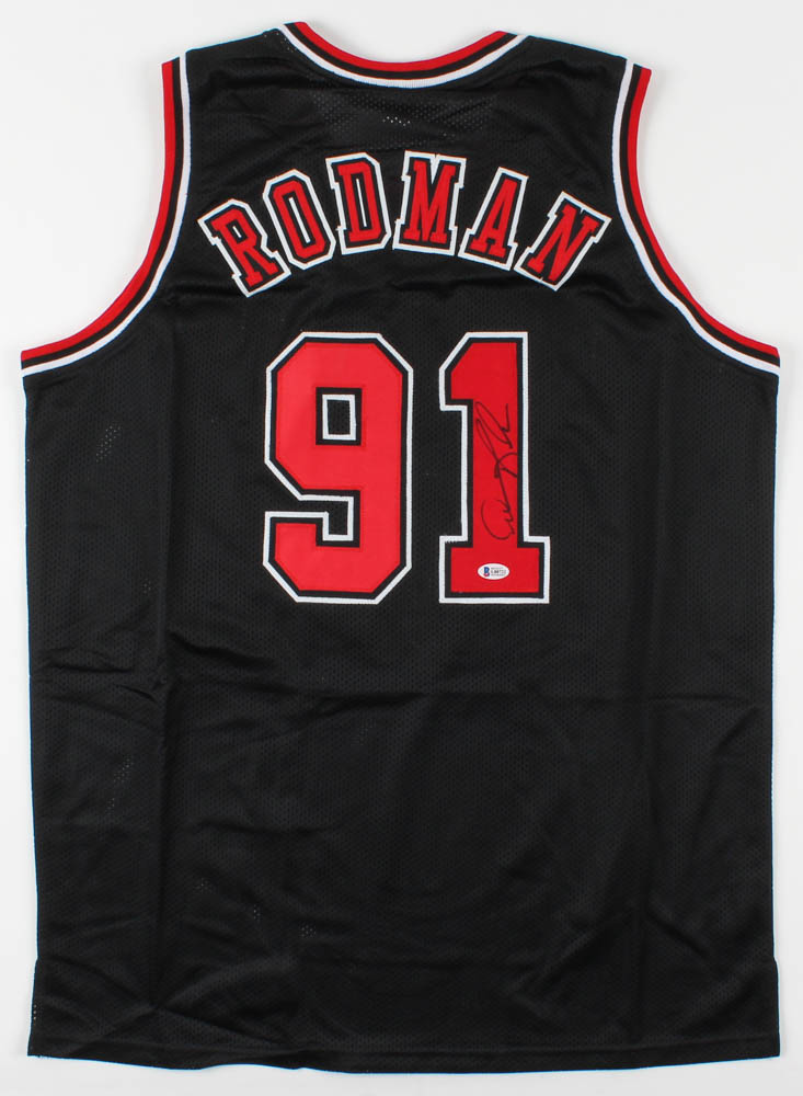 Custom on-court style jersey. Everything sewn on, size XL. Hand-signed by Dennis Rodman (Chicago Bulls, HOF).