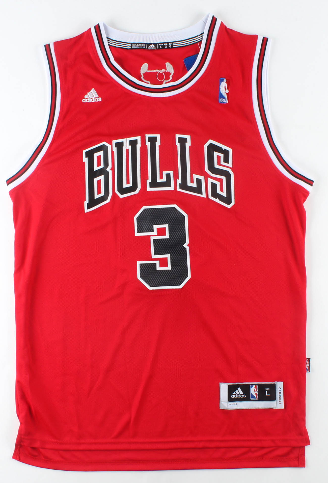 Adidas on-court style jersey. Everything sewn on, size L. Hand-signed by Doug McDermott (Chicago Bulls).