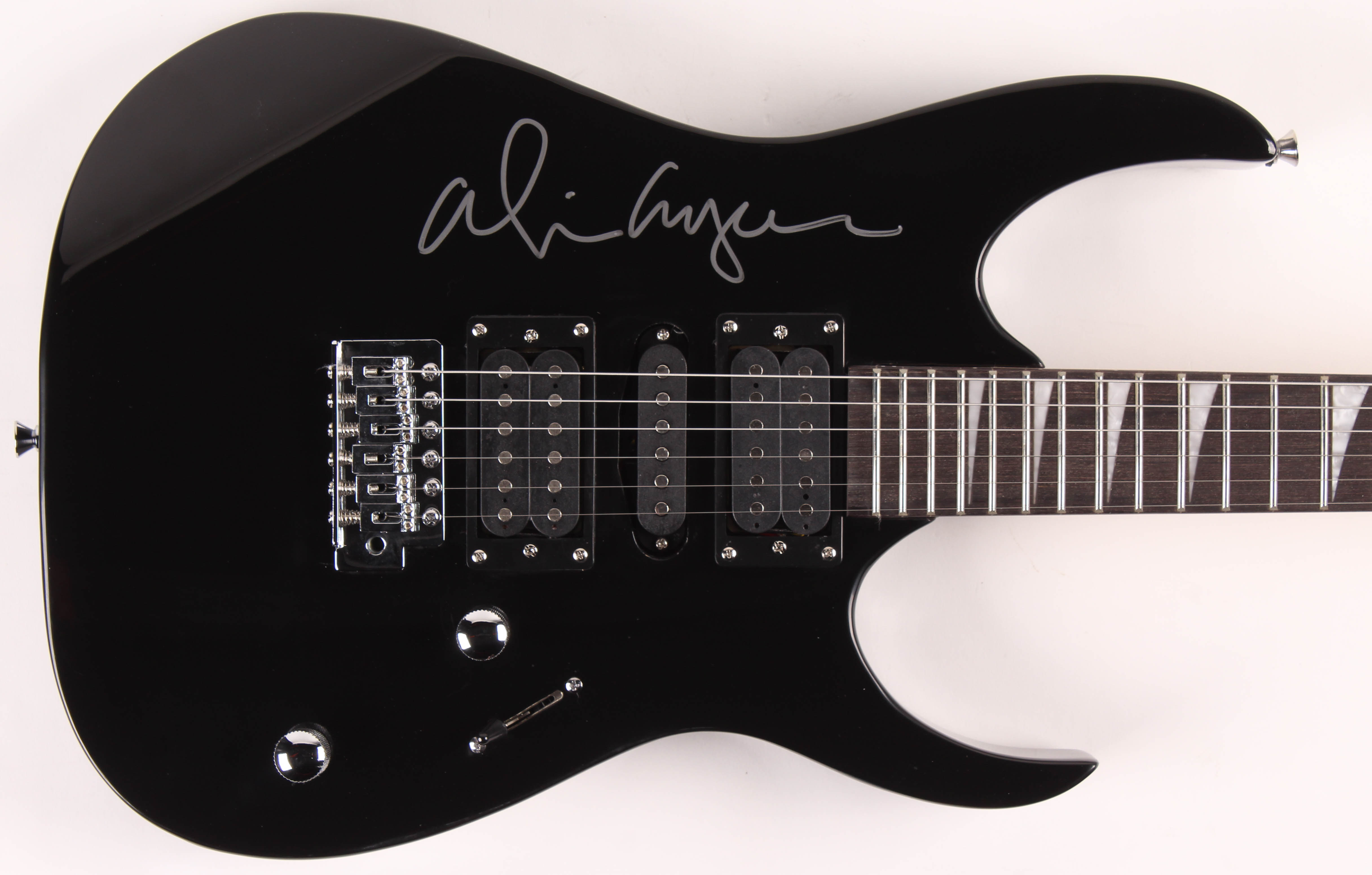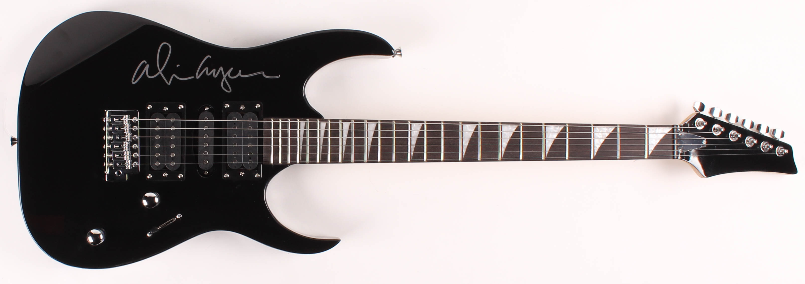 Full-size non-branded electric guitar measures approximately 39" in length and is hand-signed on the body by Alice Cooper.