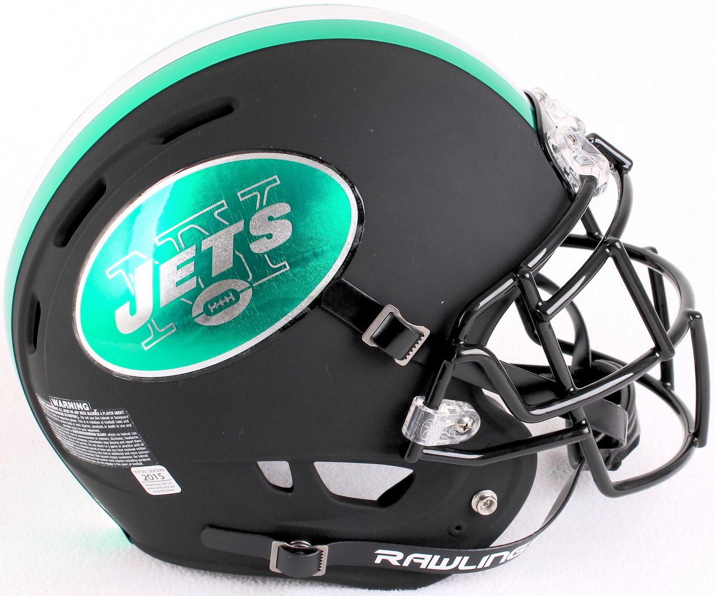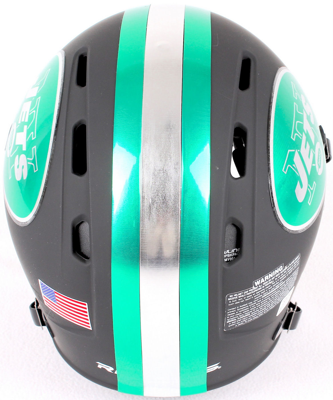 New York Jets Custom Matte Black Full-Size Authentic Proline Helmet with Chrome Decals