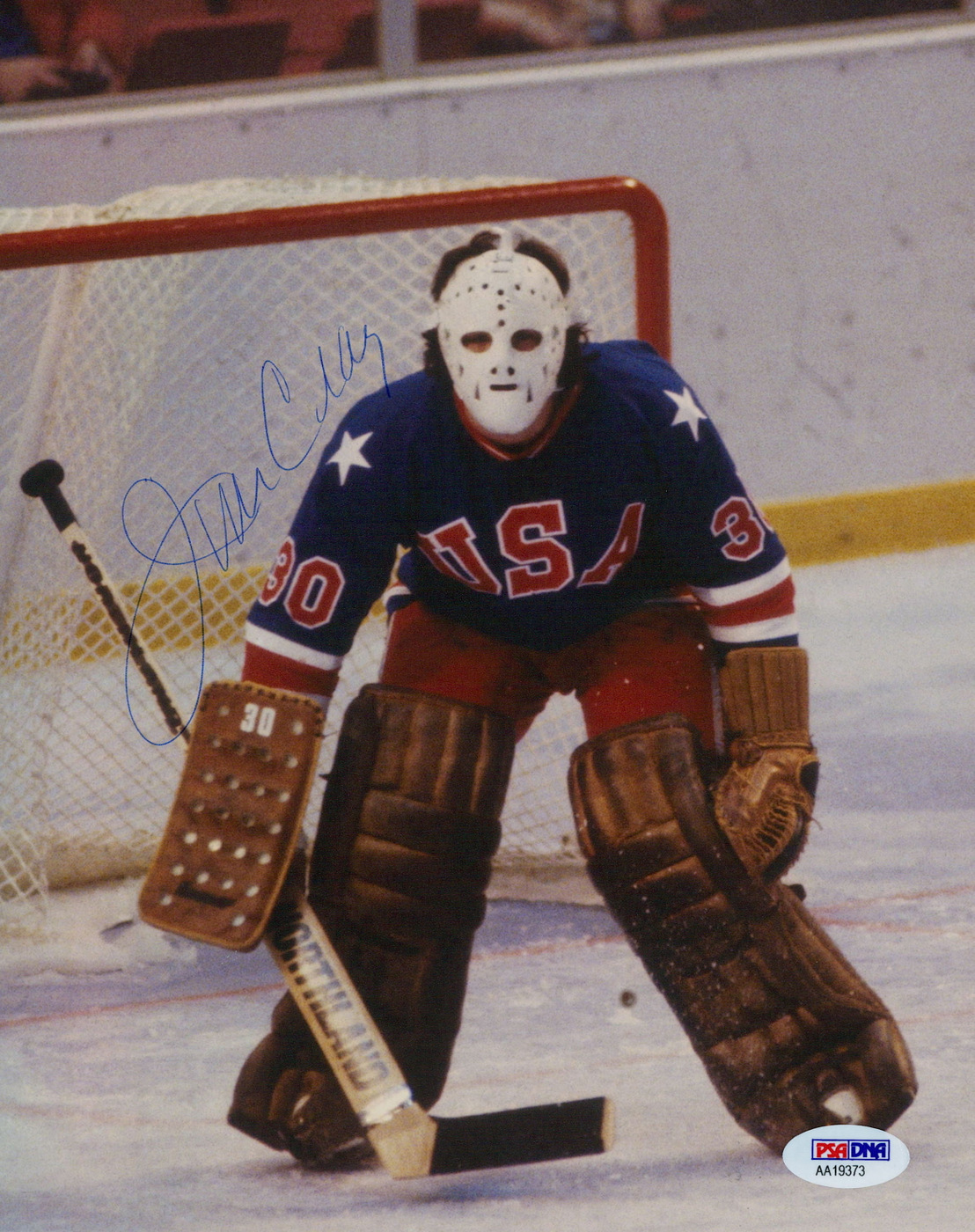 Photo measures 8" x 10" in size and has been hand-signed in blue ink pen by Jim Craig. The autograph includes an official PSA/DNA hologram and matching COA for authenticity purposes.