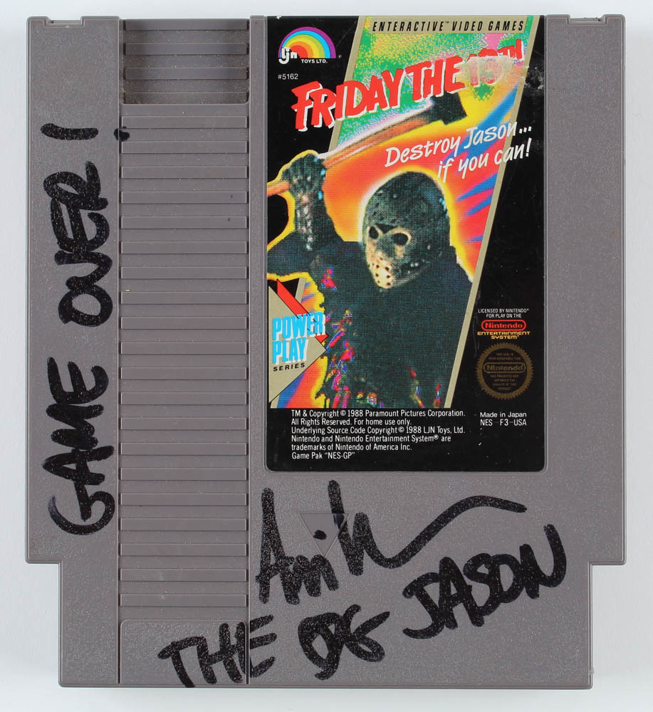 This original 1989 "Friday the 13th" Nintendo video game cartridge for the NES is hand-signed and inscribed by Ari Lehman (Jason).