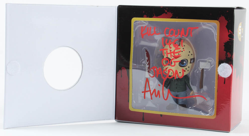 Figure measures approximately 3.5" tall and comes in the original box. Hand-signed by Ari Lehman (Jason).