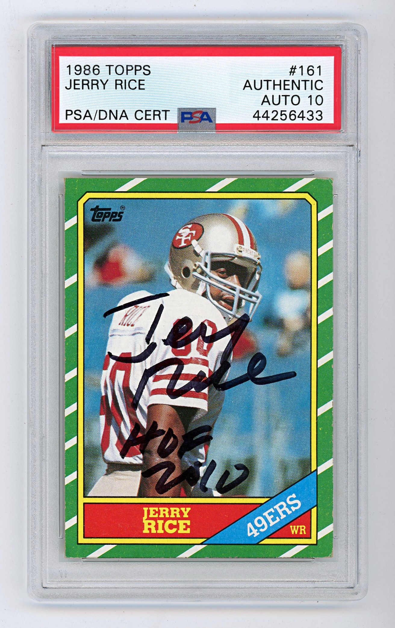 Jerry Rice Signed 1986 Topps #161 RC Inscribed "HOF 2010" (PSA Encapsulated)