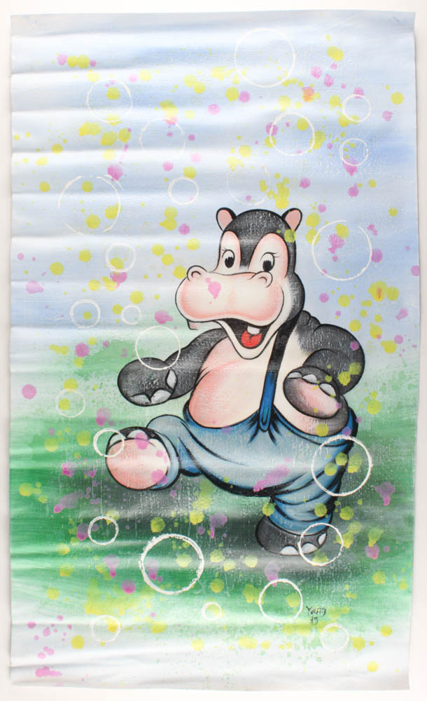 “Pink Hippo” measures approximately 25.5" x 45" in size, Original Oil painting on linen has been hand-painted and signed by the artist Rodney Weng.