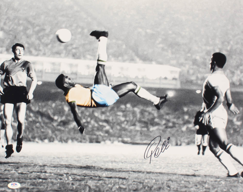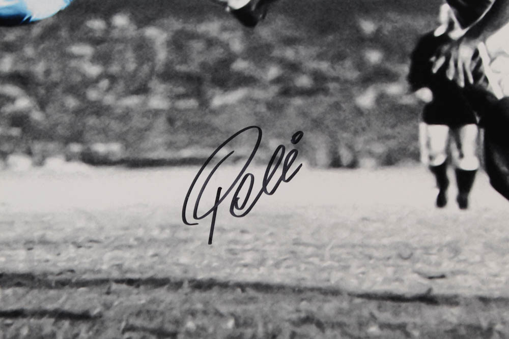 Photo measures 16" x 20" in size and has been hand-signed by Pele.