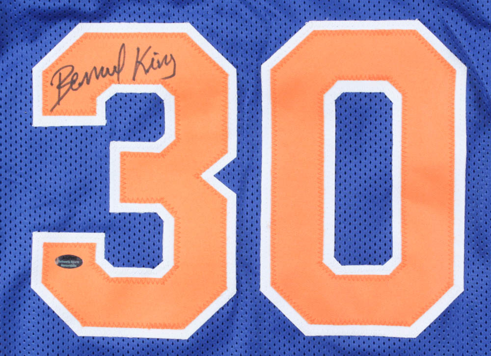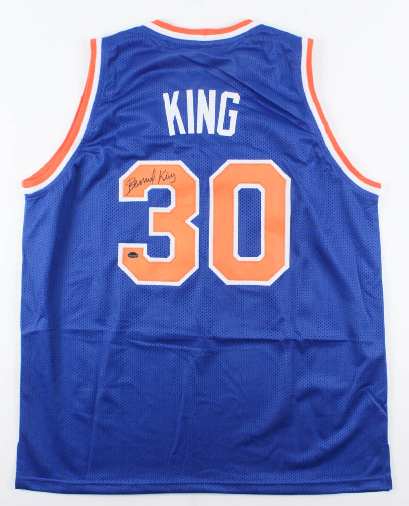 Custom on-court style jersey. Everything is sewn on, size XL. Hand-signed by Bernard King (HOF).