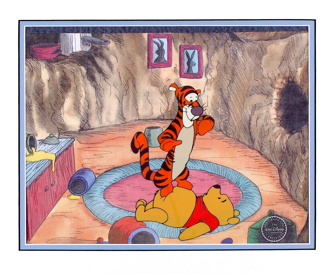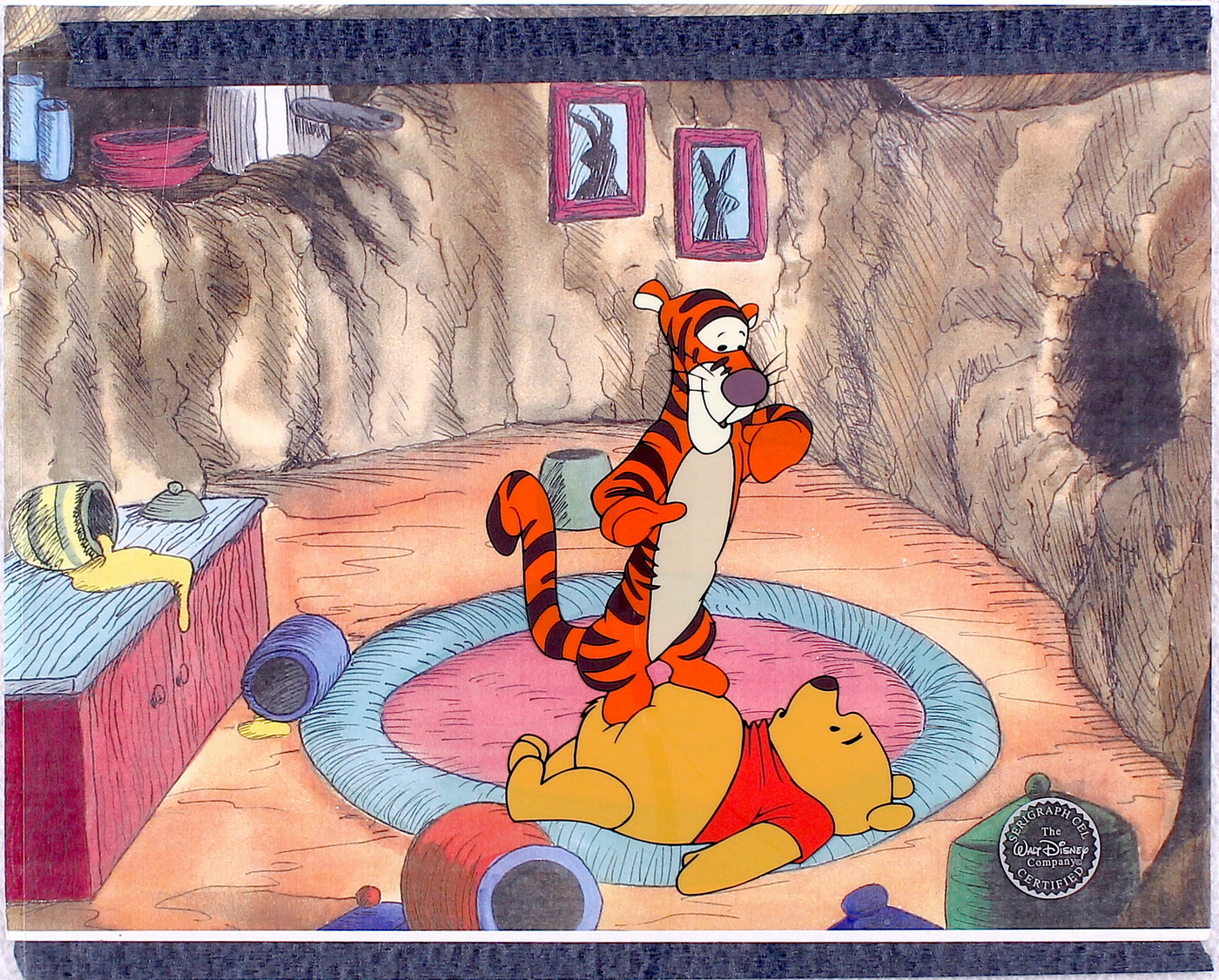 Winnie the Pooh & Tigger Walt Disney 16x19 Matted LE Certified Serigraph Cel in Official Disney Mat