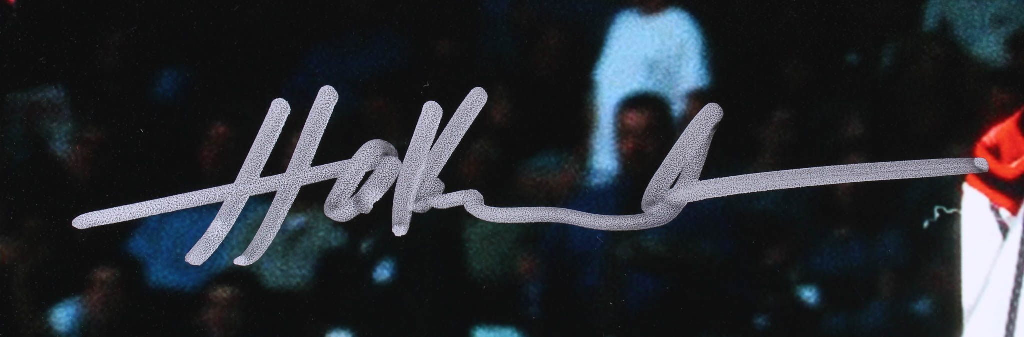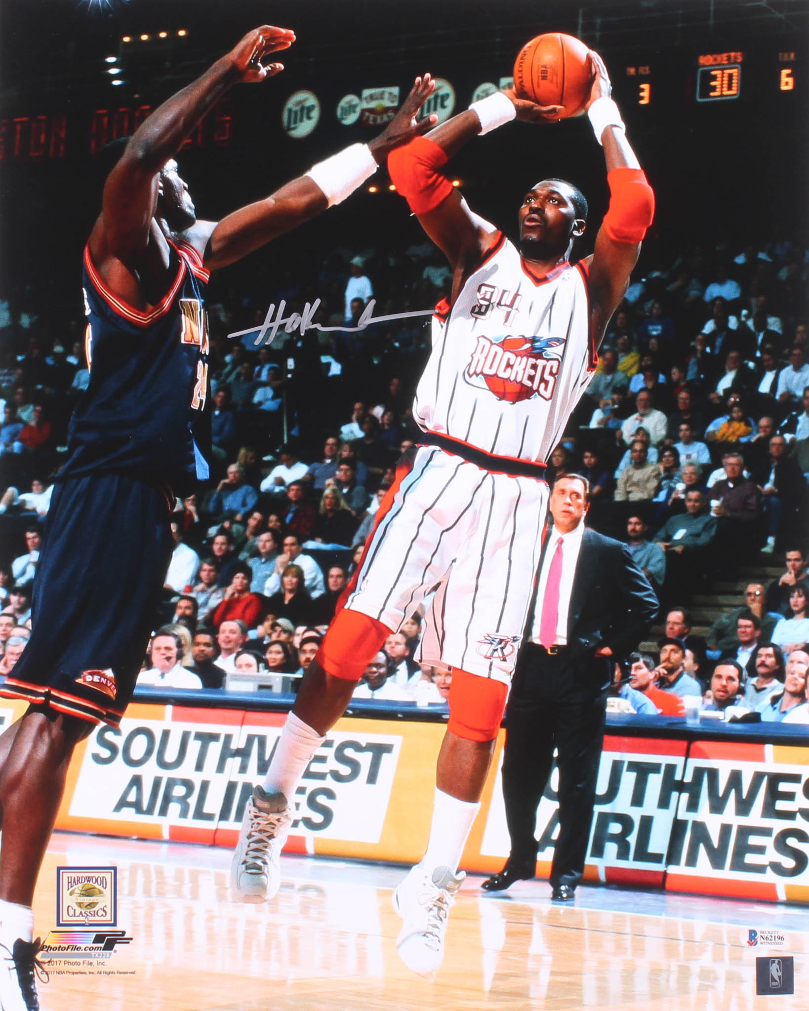Photo measures 16" x 20" in size and has been hand-signed by Hakeem Olajuwon (Houston Rockets, HOF).