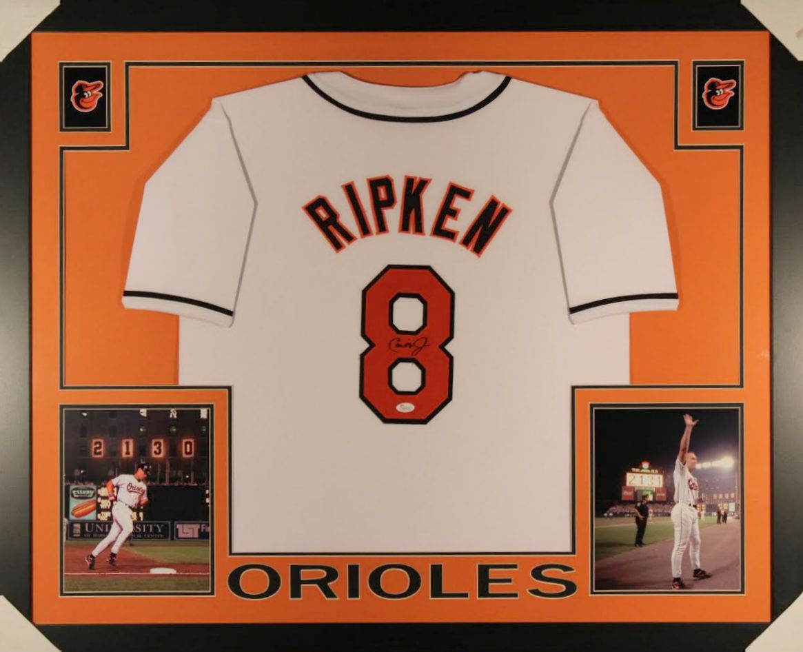 Cal Ripken Jr. Signed Orioles 35x43 Custom Framed Jersey (JSA COA)