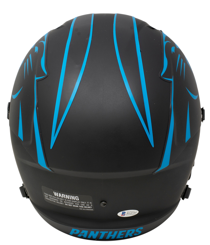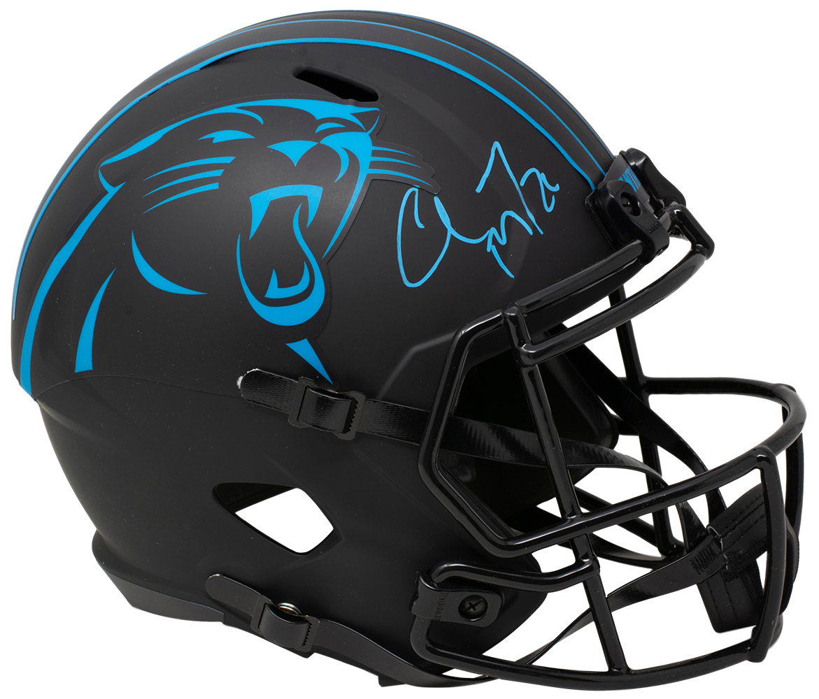 Riddell Carolina Panthers full-size replica eclipse alternate speed helmet. Hand-signed by Christian McCaffrey.