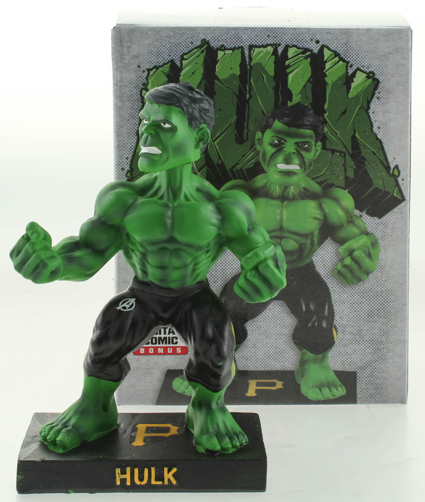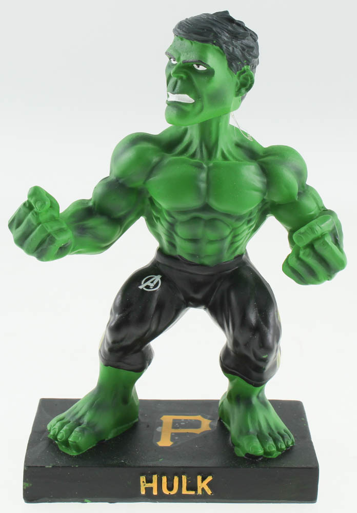 The Hulk Bobblehead with Pittsburgh Pirates logo on the base. Comes with the original packaging as shown.