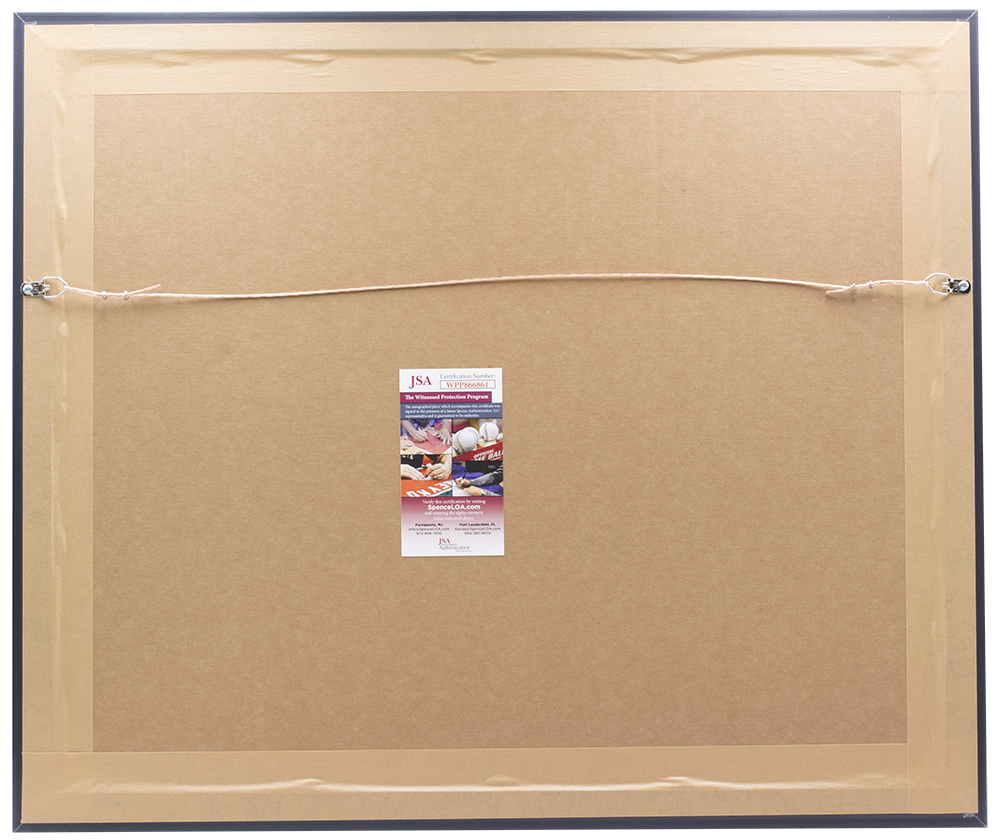 Custom framed display measures approximately 22" x 27" in size. Features a photo that has been hand-signed by Mike Tyson (HOF).