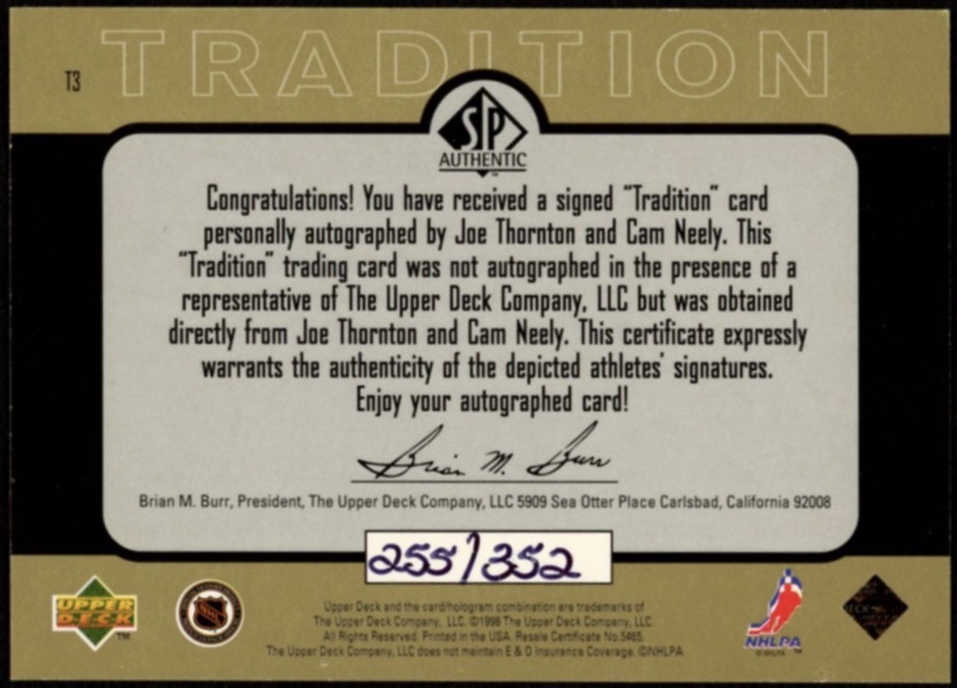 Joe Thornton / Cam Neely 1997-98 SP Authentic Tradition #T3