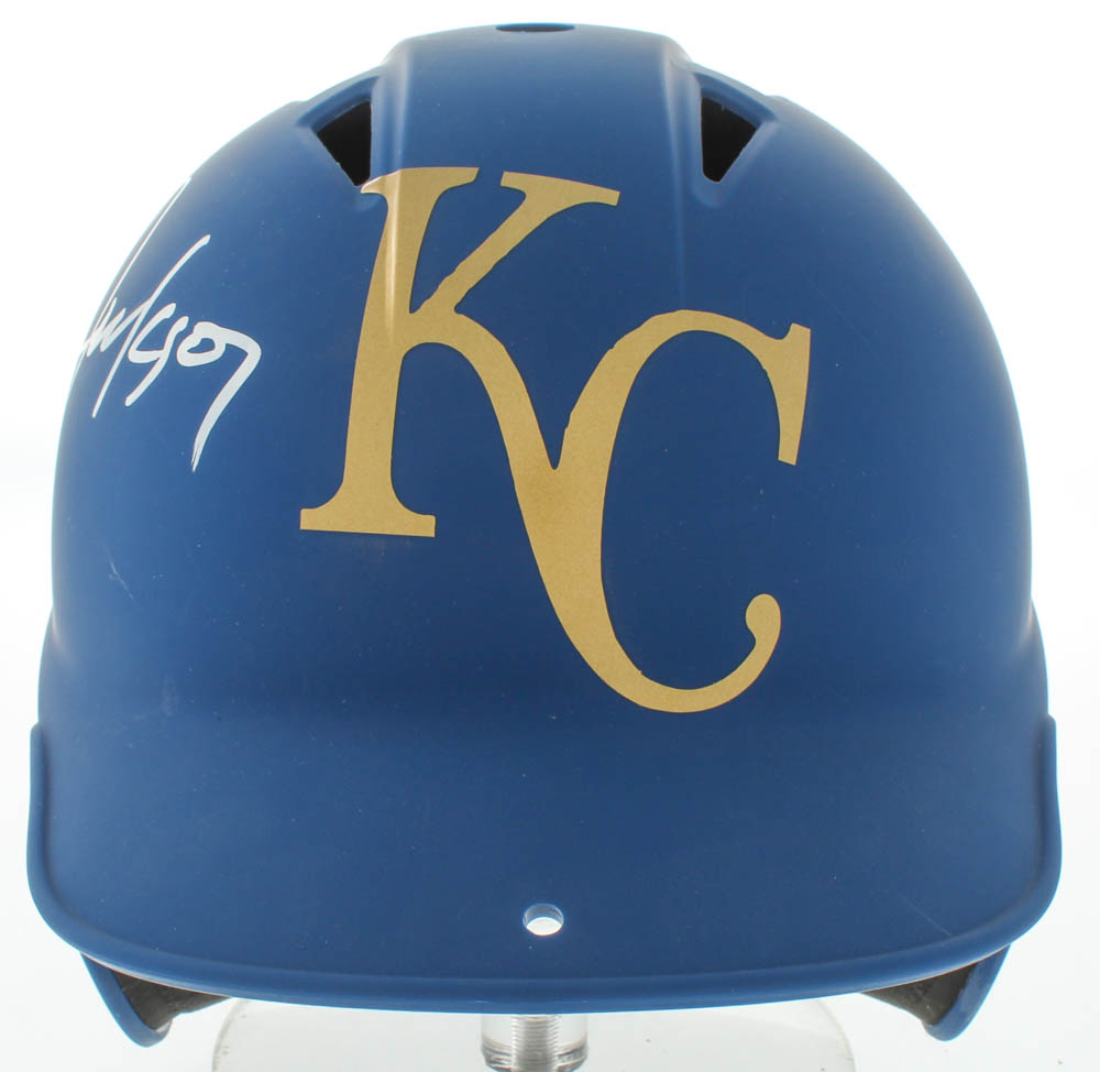 Full-size matte blue authentic on field batting helmet has been hand-signed by Bo Jackson (Kansas City Royals). Please see photos for details.