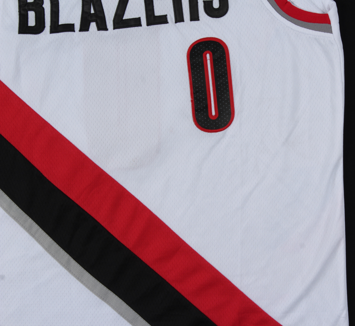Nike on-court style jersey with everything sewn on, size 48. Hand-signed by Damian Lillard (Portland Trail Blazers). Please see images for details regarding the condition of the jersey.