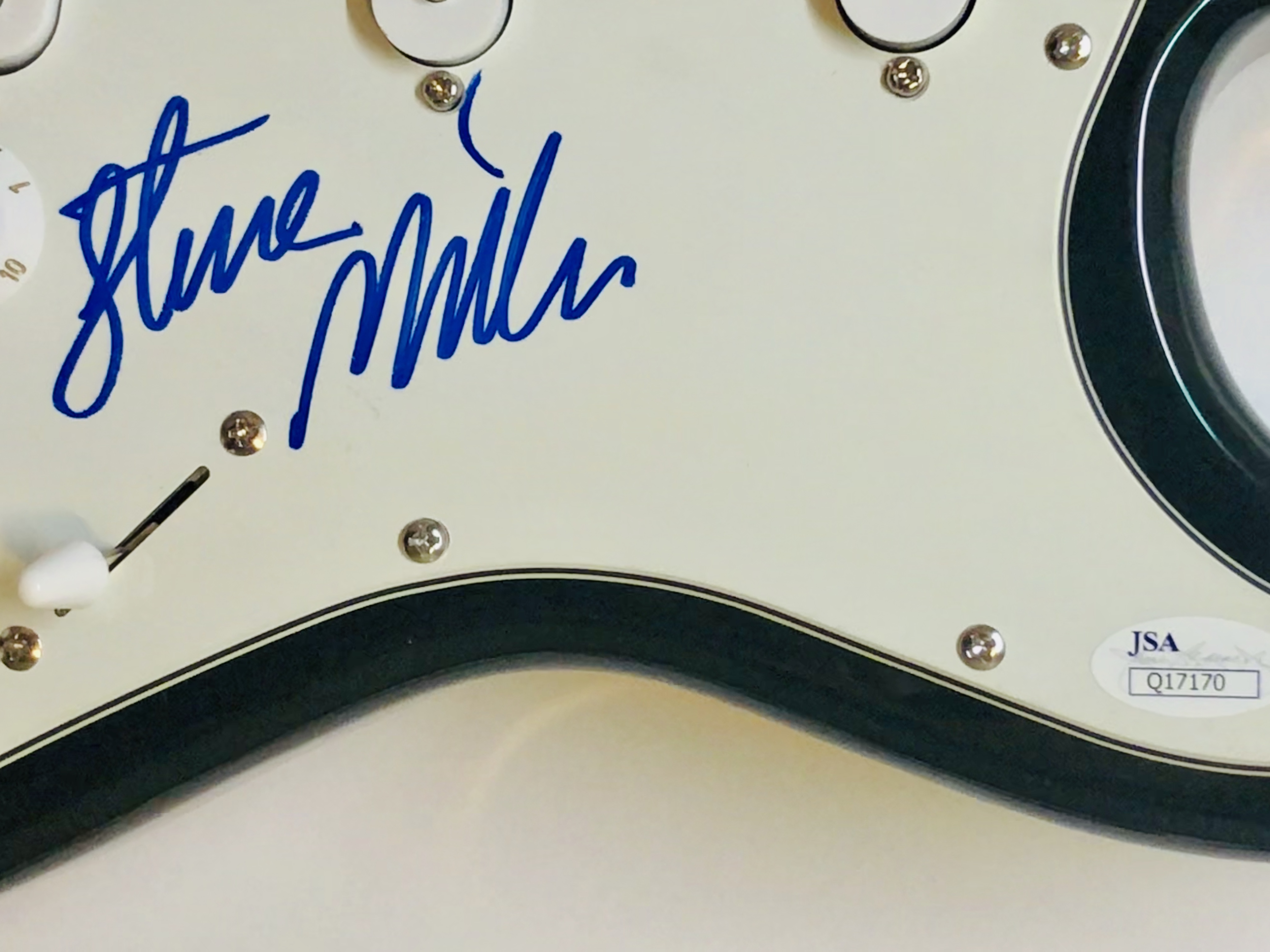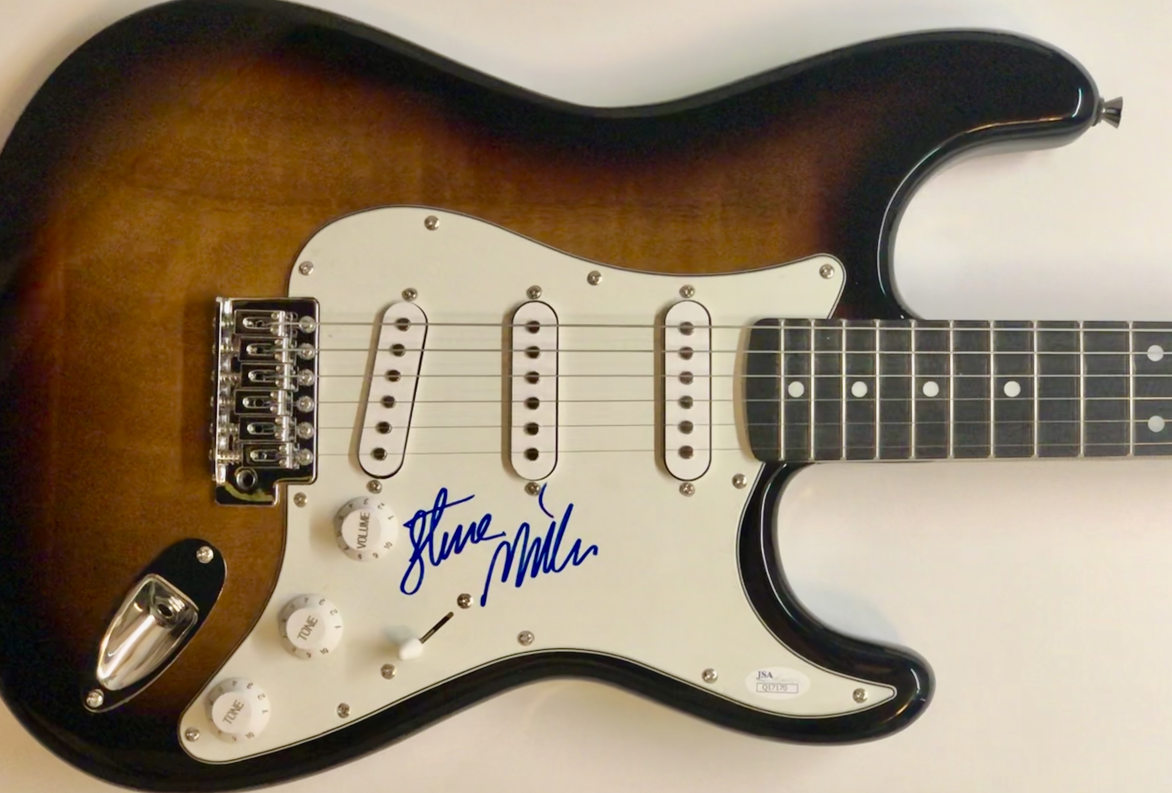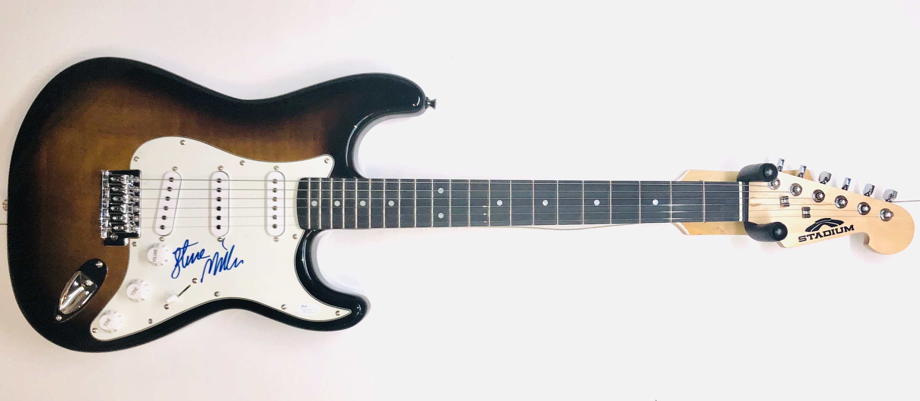 Full-size Stadium electric guitar. Hand-signed on the pickguard by Steve Miller.